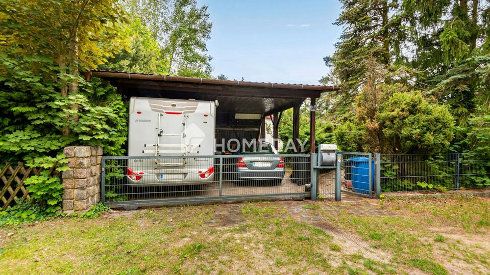 Versteckt vor neugierigen Blicken lädt das nicht einsehbare Grundstück dazu ein, persönliche Gartenideen zu verwirklichen – sei es ein ansprechender Ziergarten, ein sonniger Nutzgarten oder ein stilles Refugium inmitten der Natur. Für entspannte Stunden im Freien lädt zudem die sonnige Terrasse ein – ideal für ein Frühstück im Grünen oder gesellige Abende beim Grillen. Ein praktisches Gartenhaus bietet zusätzlichen Stauraum für Gartengeräte oder Fahrräder, während das vorhandene Doppelcarport Ihre Fahrzeuge vor Witterungseinflüssen schützt.