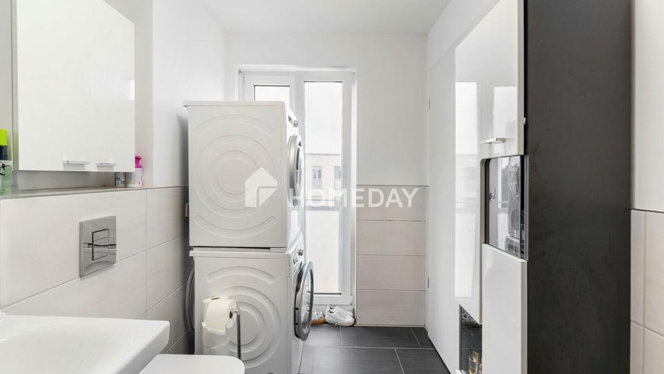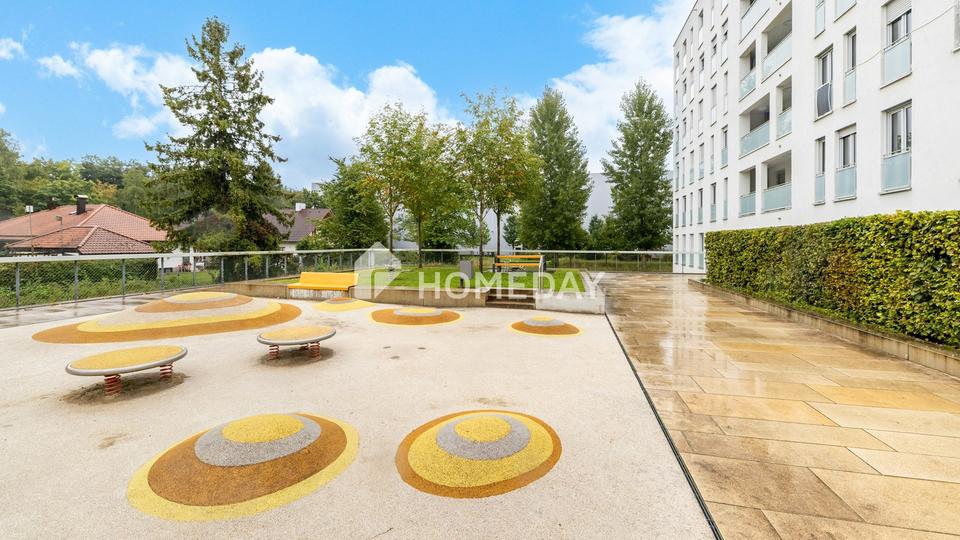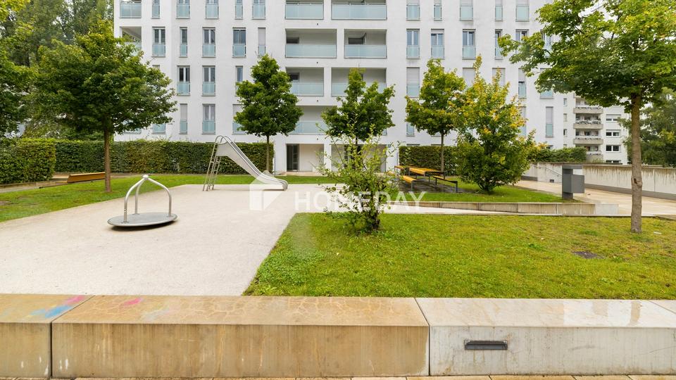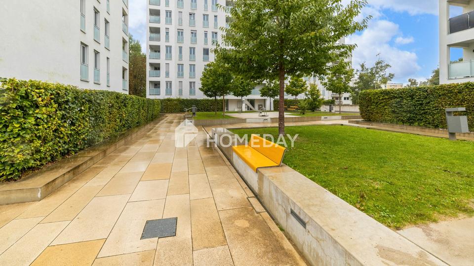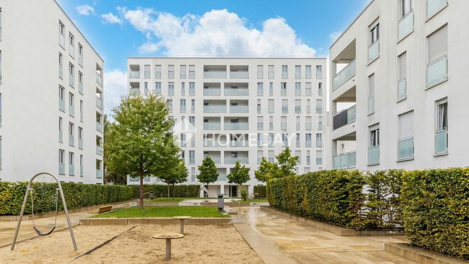 Die Lage der Wohnung ist sowohl ruhig als auch bestens angebunden: In unmittelbarer Umgebung befinden sich grüne Innenhöfe, Spielplätze und moderne Nachbargebäude. Gleichzeitig ist die Anbindung an den öffentlichen Nahverkehr sowie an Einkaufsmöglichkeiten, Schulen und Kitas hervorragend.