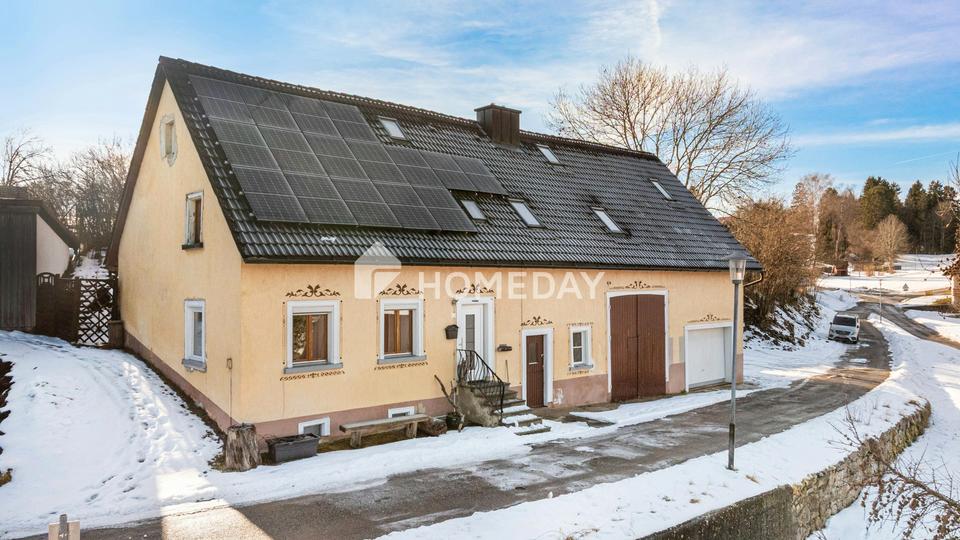 Ergänzt wird das Anwesen durch eine zum Teil ausgebaute Scheune, die vielfältige Nutzungsoptionen bietet, etwa als Lager, Werkstatt, Atelier oder für einen weiteren Ausbau. Für Fahrzeuge stehen Stellplätze, eine Garage sowie ein Carport zur Verfügung. Eine installierte Photovoltaikanlage unterstreicht den nachhaltigen Charakter der Immobilie.