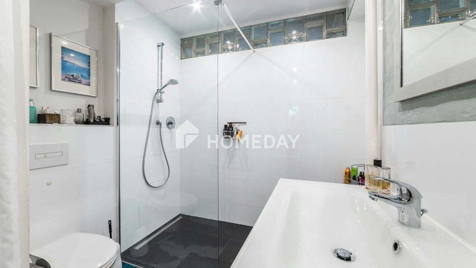 Auf rund 55,6 Quadratmetern Wohnfläche verteilt sich ein durchdachter Grundriss mit zwei Zimmern, einem Flur, einer separaten Küche, praktischen Abstellmöglichkeiten sowie einem Tageslichtbad. Das Badezimmer wurde 2016 modernisiert und verfügt über eine Eckbadewanne, eine separate Dusche sowie einen Handtuchheizkörper. Die Toilette ist räumlich getrennt, ein Detail, das den Wohnkomfort zusätzlich erhöht.