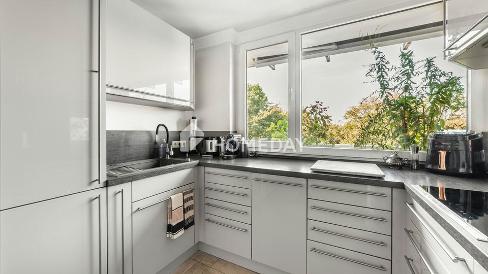 Die separate Küche ist funktional geschnitten und mit einer hochwertigen Einbauküche ausgestattet. Diese verfügt über Bosch-Elektrogeräte aus dem Jahr 2020 und ist bereits im Kaufpreis enthalten. Der Raum bietet ideale Voraussetzungen für entspanntes Kochen. Fliesenböden, doppelt verglaste Kunststofffenster mit Rollläden (letzte Fenstersanierung 2001) sowie der insgesamt gepflegte Gesamtzustand der Wohnung unterstreichen den soliden und wertbeständigen Charakter dieser Immobilie.