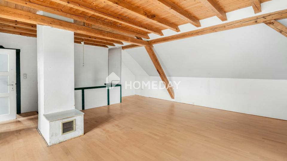Mit einer Wohnfläche von rund 135 Quadratmetern, verteilt auf acht Zimmer, zwei Bäder, eine Küche sowie drei praktische Abstellräume, bietet das Haus viel Raum für kreative Wohnideen oder auch für die Kombination von Wohnen und Arbeiten unter einem Dach. Ein großer Werkraum im Erdgeschoss eröffnet zusätzliche Nutzungsmöglichkeiten – ob als Atelier, Hobbybereich oder Werkstatt.