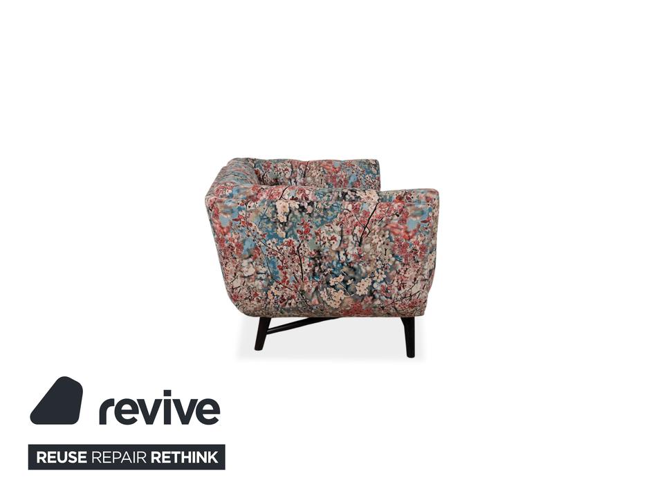 Das Roche Bobois Profile ist ein echtes Statement-Piece, das mit seiner extravaganten Form und dem bunten Stoffmuster sofort zeigt, wer hier wohnt. Das Design besticht durch eine markante Silhouette und einen Korpus, der mit einem floral gemusterten Stoff in Pink, Blau, Rot und Beige bezogen wurde. Uns fasziniert besonders dieser ikonische Kontrast zwischen dem kompakten, weich gepolsterten Aufbau und den filigranen, dunklen Holzfüßen, die dem Sofa eine angenehme visuelle Leichtigkeit verleihen.Hinter der schicken Optik steckt zudem echtes Handwerk, denn Roche Bobois ist weltweit bekannt für die Symbiose aus Komfort und zukunftsweisendem Design. Die tiefe Sitzfläche und die rundum gepolsterte Form laden dazu ein, sich einfach mal fallenzulassen und den Alltag hinter sich zu lassen. Es ist das ideale Herzstück für alle, die ein kompaktes Sitzmöbel mit Charakter suchen, das in jedem Raum sofort die Hauptrolle übernimmt.