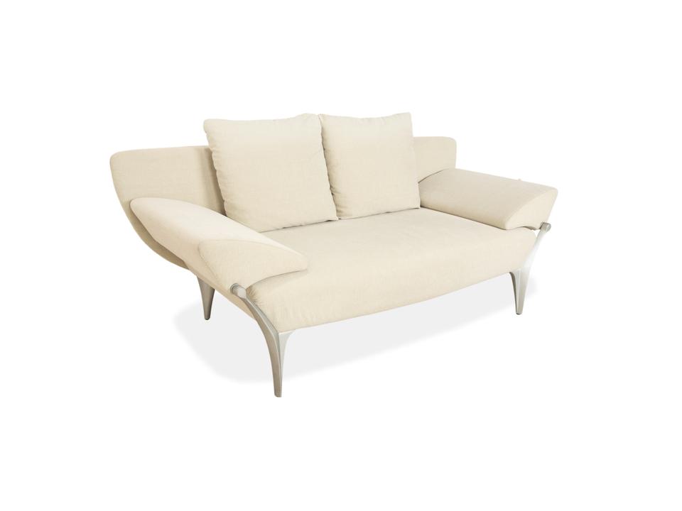 Mit dem Modell 1600 beweist die Premium-Marke Rolf Benz, dass sich Funktionalität und filigrane Optik perfekt vereinen lassen. Dieser Zweisitzer ist ein Design-Statement, das durch seine außergewöhnliche Farbgebung besticht: Der Stoffbezug in einer sanften Mischung aus Creme und zartem Mint wirkt unglaublich frisch und leicht. Er holt eine skandinavische Brise in dein Wohnzimmer, ohne dabei aufdringlich zu sein.Das Design ist schlank und bodenfrei, getragen von eleganten Metallfüßen, was das Sofa auch in kleineren Räumen luftig wirken lässt. Der eigentliche Clou ist jedoch die namensgebende manuelle Funktion: Die Armlehnen lassen sich flexibel verstellen. Du kannst sie hochklappen, um dich gemütlich in die Ecke zu kuscheln, oder flach abklappen, um die Sitzfläche optisch zu verbreitern und eine offene Lounge-Linie zu schaffen. Ein Sofa für Individualisten, die Qualität spüren und Farben lieben, die gute Laune machen.