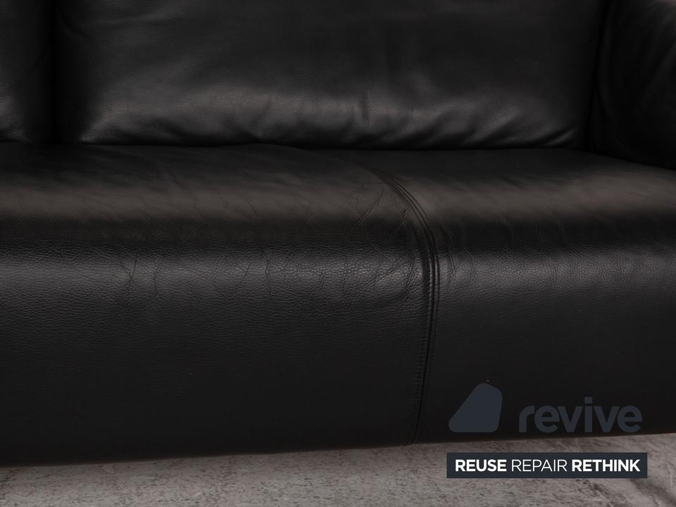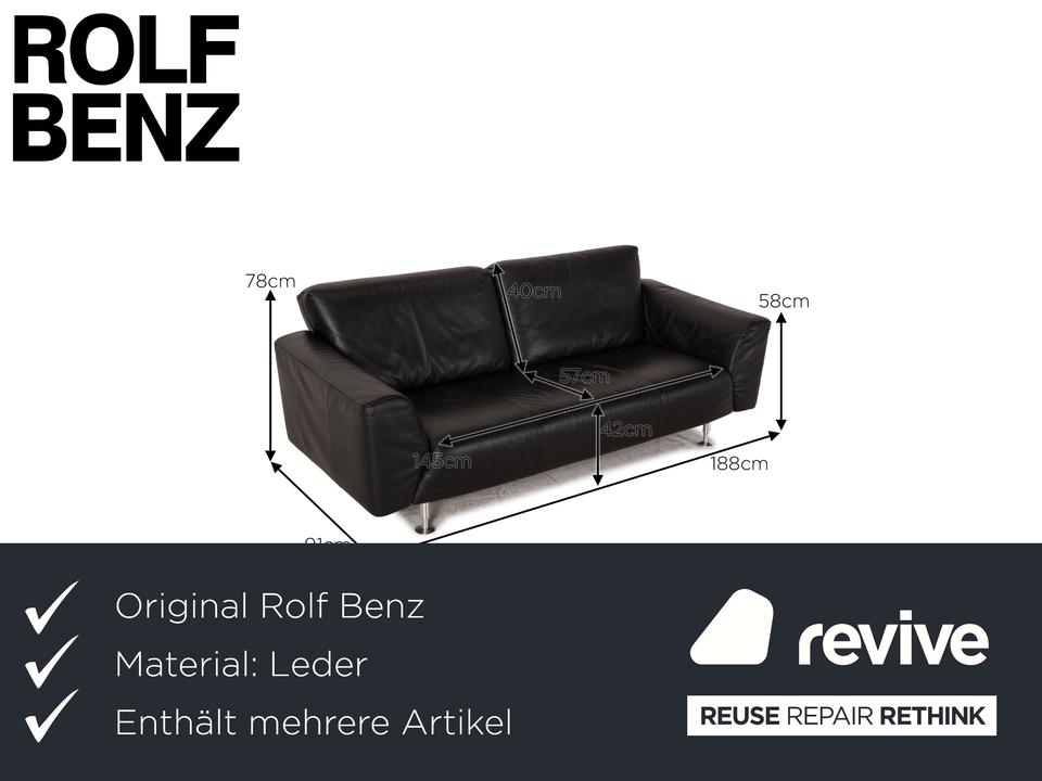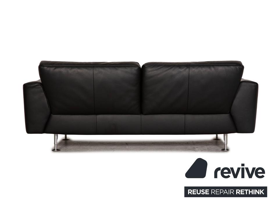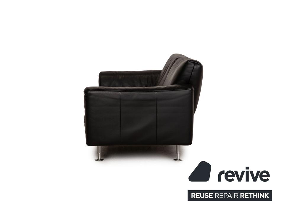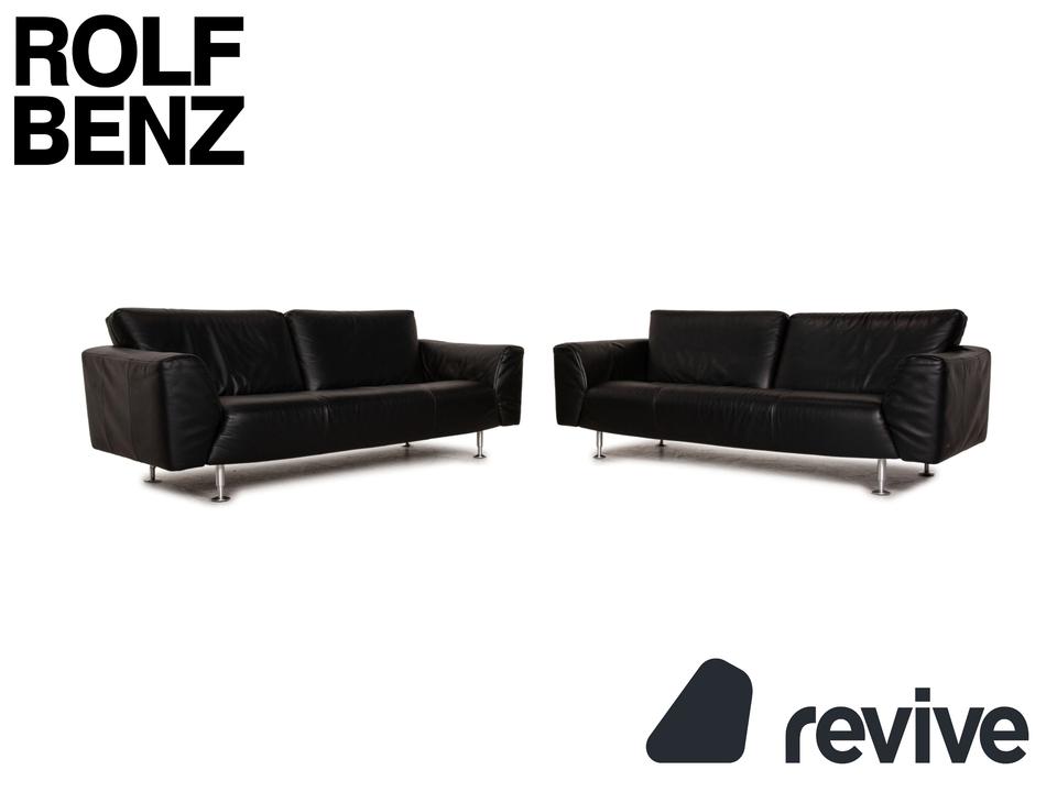 Die 250 Sofa Garnitur von Rolf Benz ist mit einem schwarzen Echtleder bezogen und steht auf silbernen Metallfüßen. Das zeitlose, klassische Design und die abgerundeten Armlehnen zeichnen sie aus.Die Garnitur besteht aus zwei Dreisitzern.