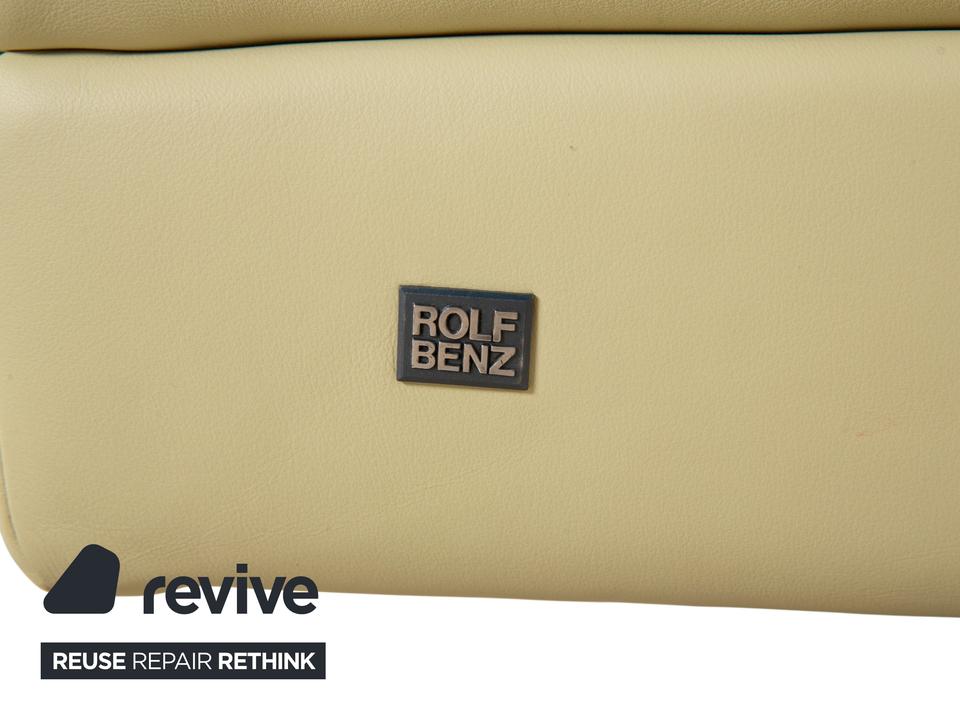 Rolf Benz 3000: Ein Frische-Kick für dein WohnzimmerDieses Sofa ist der Beweis, dass Design-Möbel nicht immer Grau oder Schwarz sein müssen. Mit dem Modell 3000 von Rolf Benz holst du dir den Frühling direkt ins Haus.Der Bezug ist ein hochwertiges Leder in einem leuchtenden Pistaziengrün (eine Mischung aus Limette und Pastellgrün). Dieser Farbton ist mutig, aber nicht grell – er wirkt unglaublich freundlich, belebend und verwandelt das Sofa in einen echten „Gute-Laune-Magneten“. Besonders raffiniert ist die Formgebung: Es handelt sich nicht um einen starren Block, sondern um eine leicht abgewinkelte Form. Diese sanfte Kurve lockert die Sitzordnung auf und sorgt dafür, dass man sich beim Sitzen besser ansehen und unterhalten kann – ideal für gesellige Runden.Für den typischen Rolf-Benz-Komfort sorgen die losen Rückenkissen, die du dir zurechtrücken kannst, wie du es brauchst. Auf der linken Seite lädt ein zusätzliches Armlehnenkissen zum Anlehnen ein, während die rechte Seite mit einer breiten, festen Armlehne abschließt. Getragen wird der Viersitzer von schlanken, zylindrischen Metallfüßen, die dem farbenfrohen Polster eine moderne Basis geben.
