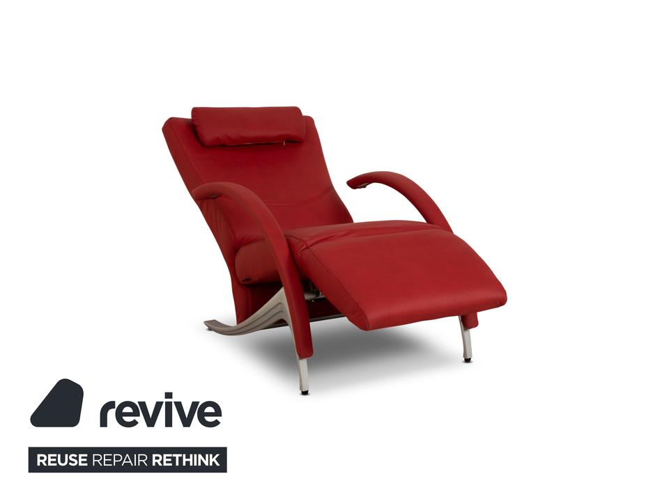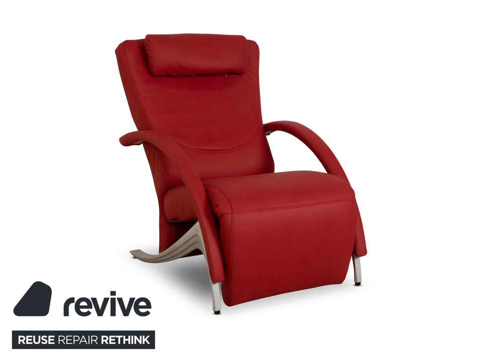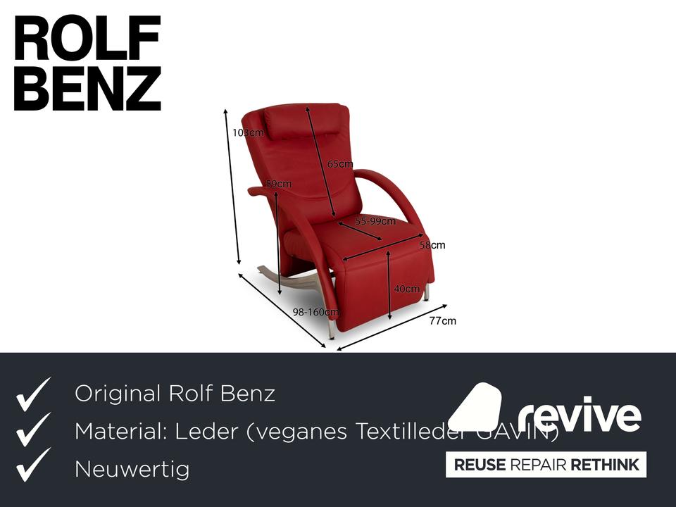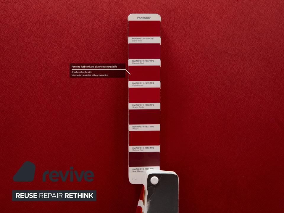 Der Sessel 3100 von Rolf Benz ist mit einem roten veganen Leder (GAVIN 107) neu bezogen worden. Er zeichnet sich durch sein klassisches Design aus und verfügt über eine Relaxfunktion.