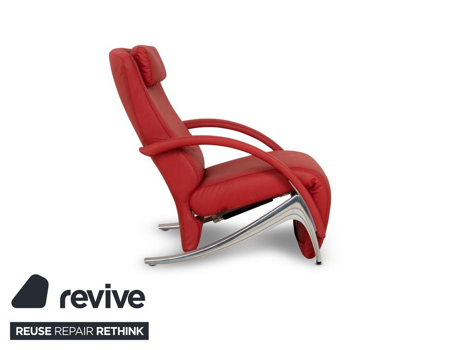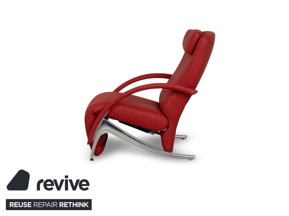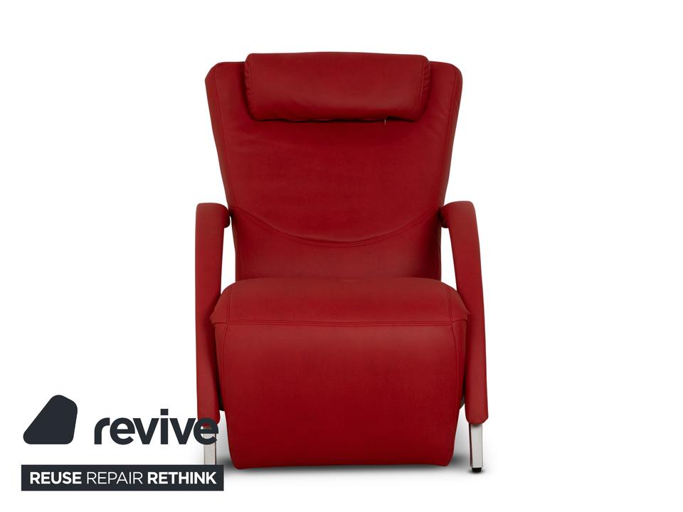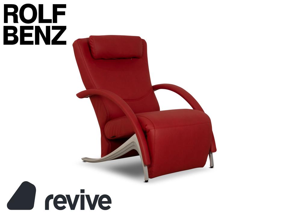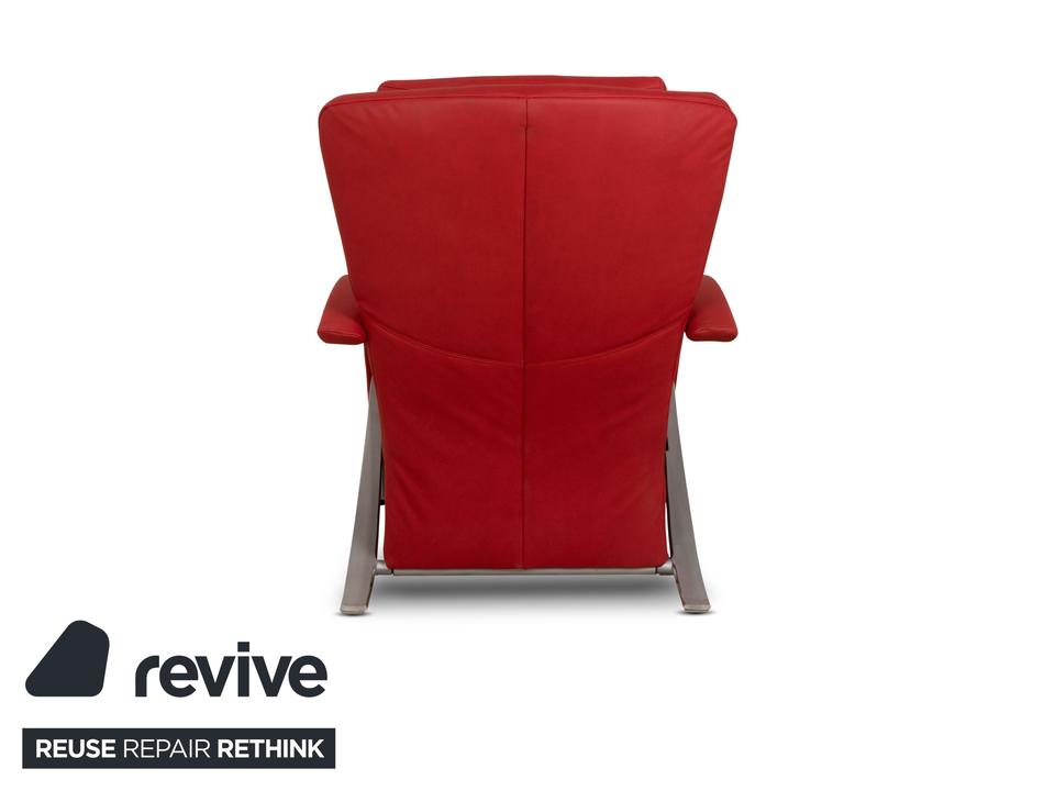 Der Sessel 3100 von Rolf Benz ist mit einem roten veganen Leder (GAVIN 107) neu bezogen worden. Er zeichnet sich durch sein klassisches Design aus und verfügt über eine Relaxfunktion.
