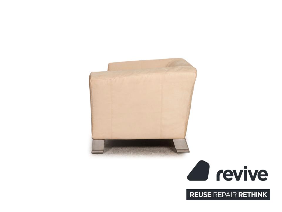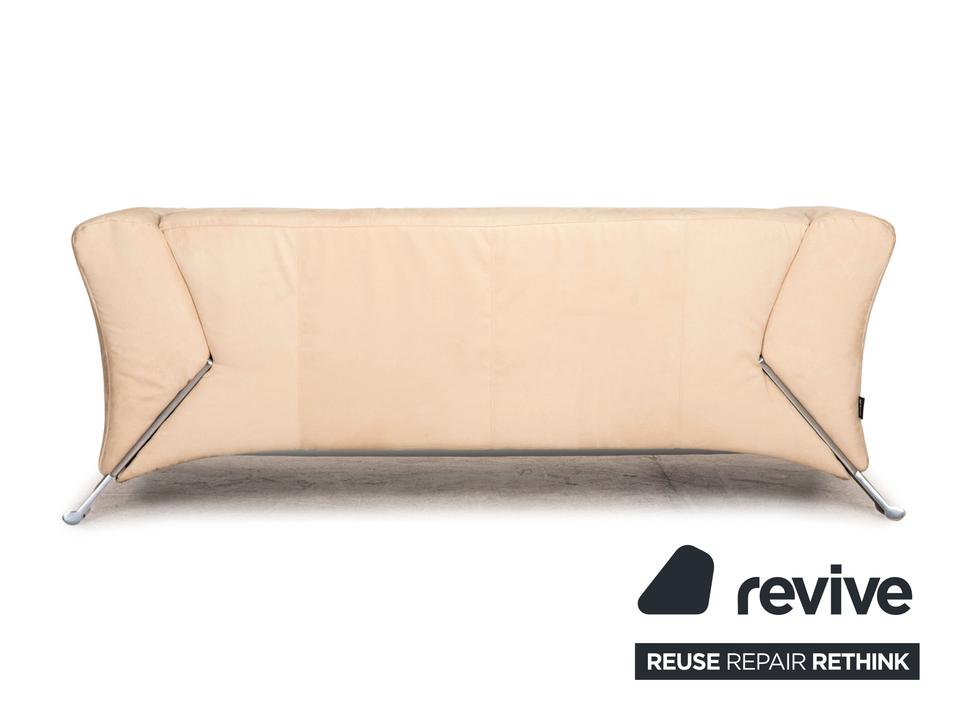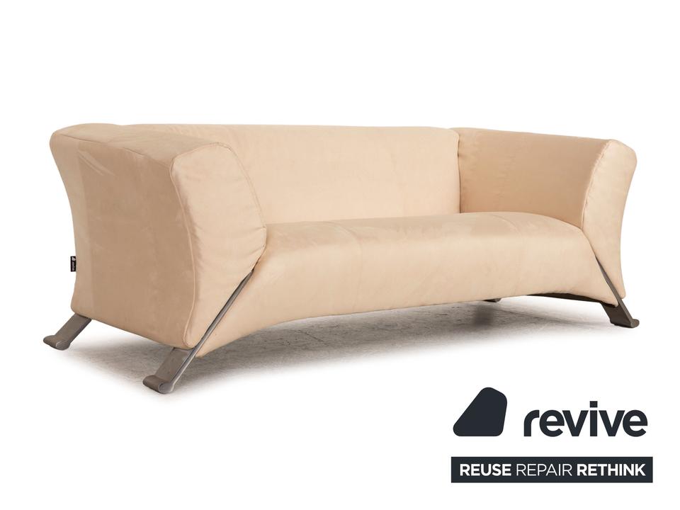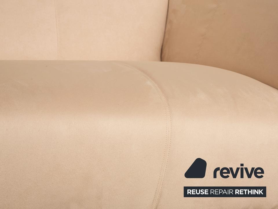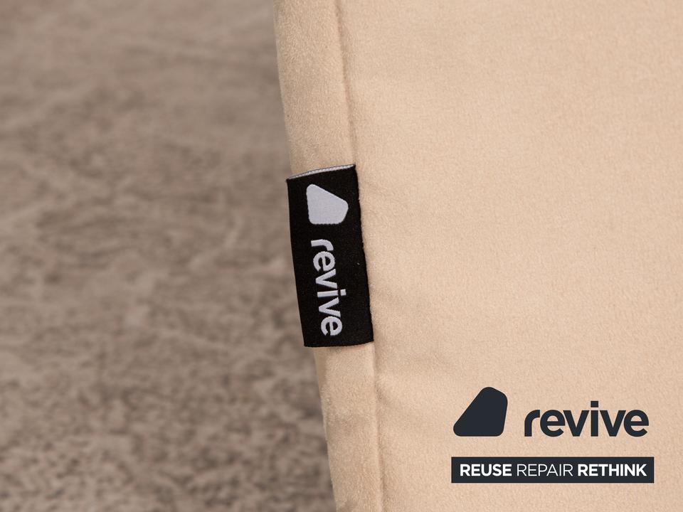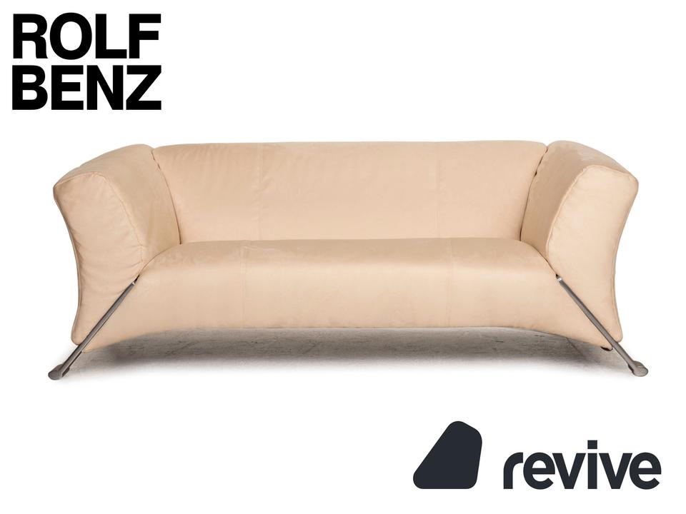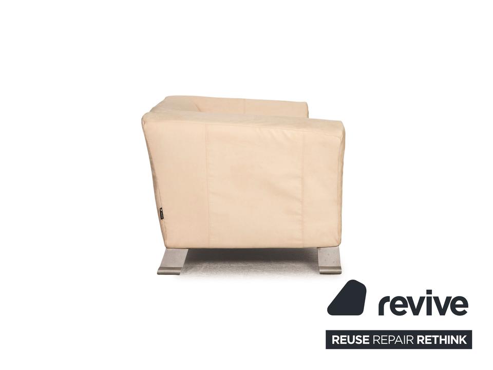 Der Zweisitzer 322 von Rolf Benz ist mit einem cremefarbenen Qualitätsstoff von Höpke (DENVER 308 Fleckschutz; Nutzschicht: 100% Polyester Grundschicht: 83% Polyester, 17% Baumwolle) neu bezogen worden und steht auf schmalen Metallfüßen. Er zeichnet sich durch das massive, kompakte Design und die schlichte Optik aus.