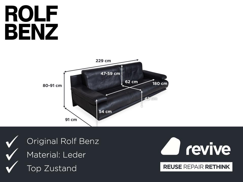 Rolf Benz 6500 Dreisitzer Leder Sofa Schwarz Couch manuelle