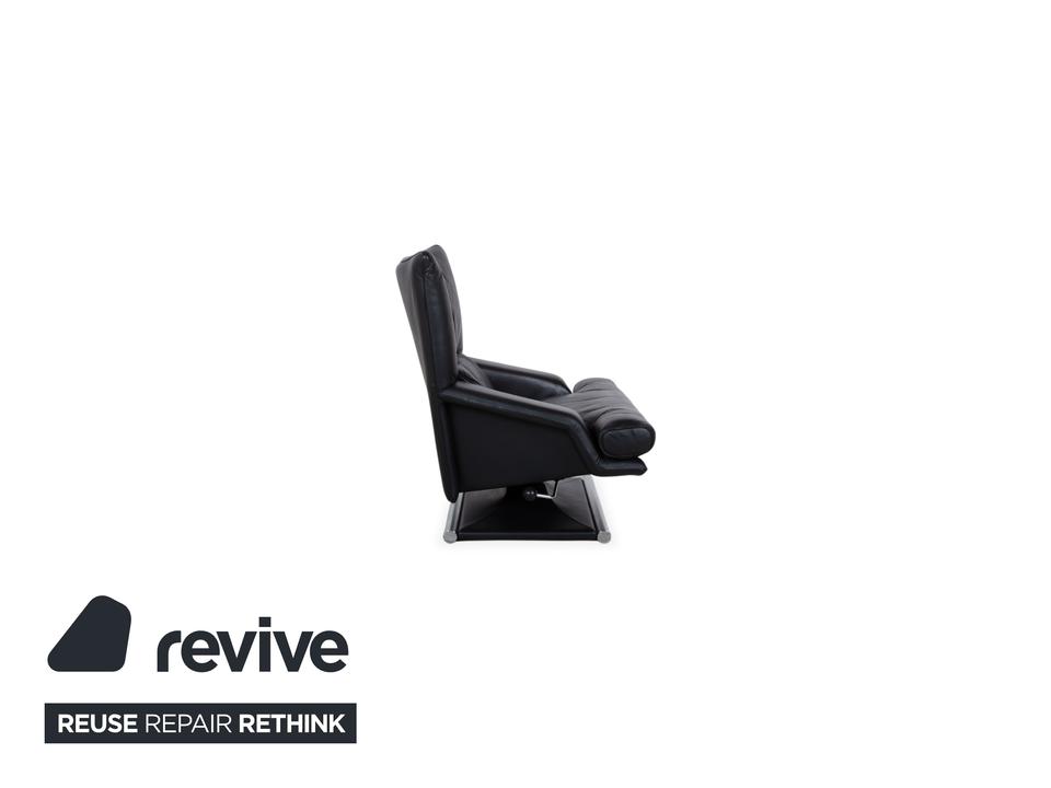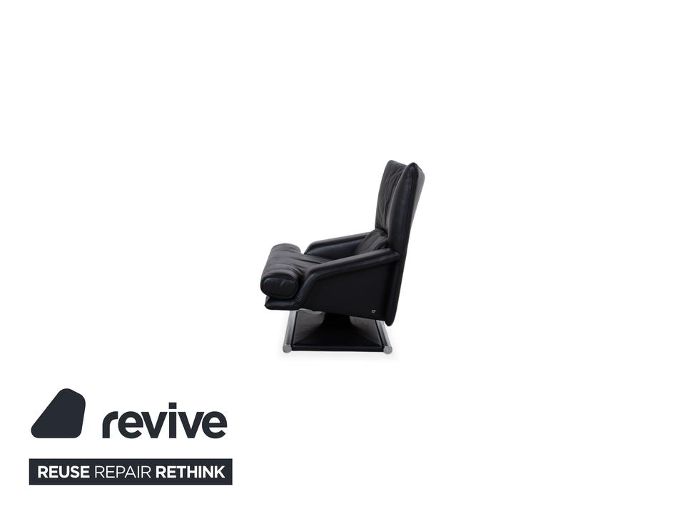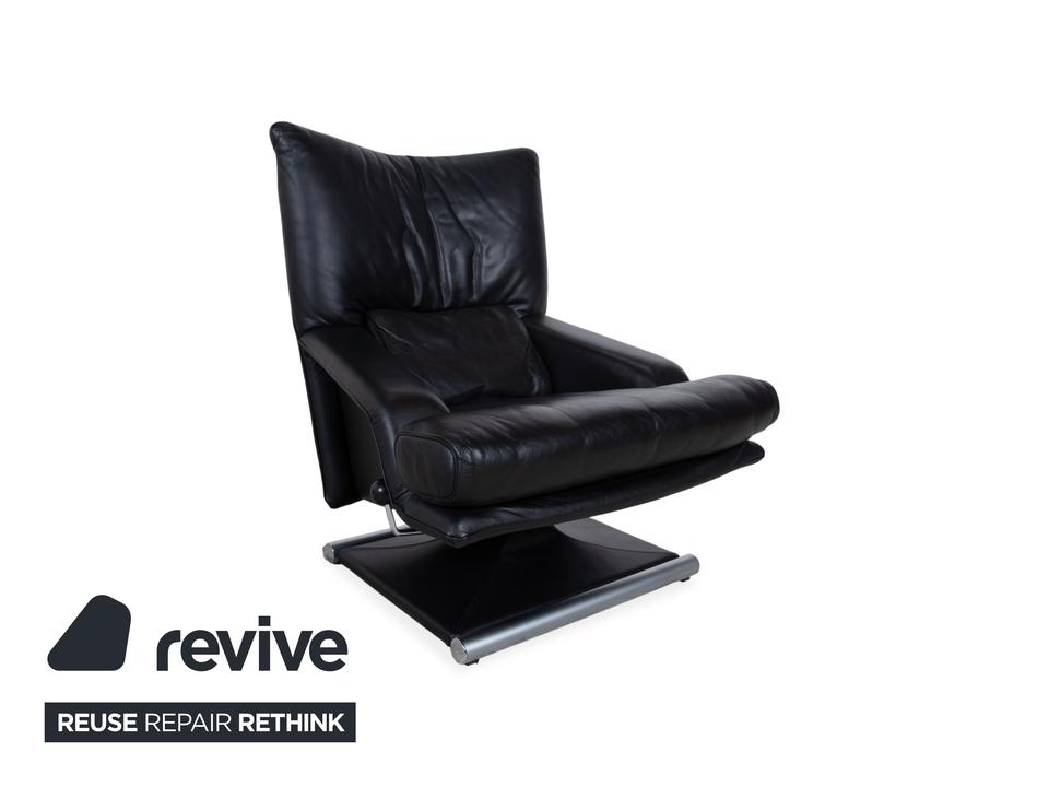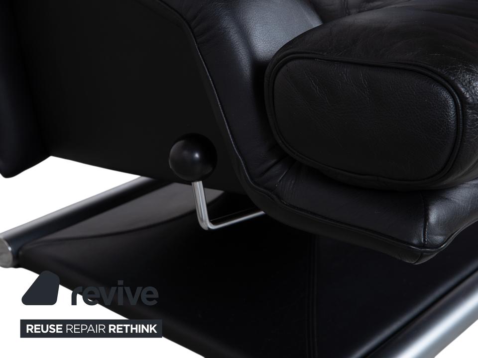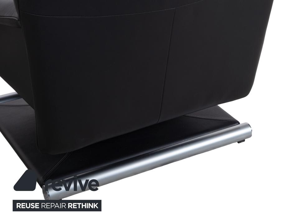 Der Rolf Benz 6500 Sessel besticht durch seine markante, kubische Silhouette in schwarzem Leder, die im Raum extrem präsent und souverän wirkt. Das Leder ist Rolf Benz typisch hochwertig und robust verarbeitet und bildet einen spannenden Kontrast zu den glänzenden Chromdetails am Gestell. Die klare Linienführung macht ihn zu einem zeitlosen Klassiker, der sowohl Eleganz als auch Beständigkeit ausstrahlt.Der passende Hocker ist die ideale Ergänzung zu diesem Entwurf. Er führt die Formsprache des Sessels konsequent fort und bietet dir die Möglichkeit, die Beine entspannt hochzulegen, ohne dass das minimalistische Gesamtbild gestört wird. Zusammen bilden sie ein harmonisches Ensemble, ein optisches und ergonomisches Highlight jeden Raum.