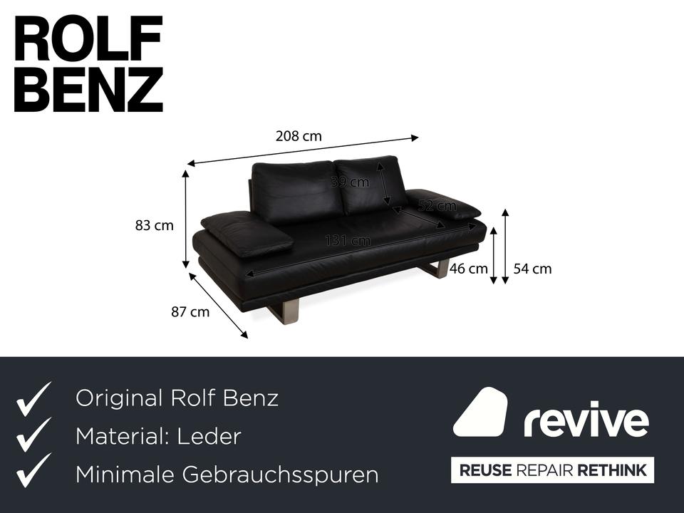 Das Rolf Benz 6600 Zweisitzer Sofa erscheint durch sein tiefes Schwarz und die silbernen Metallfüße als besonders edel. Durch das hochwertige Leder bietet es maximalen Komfort und Langlebigkeit.
