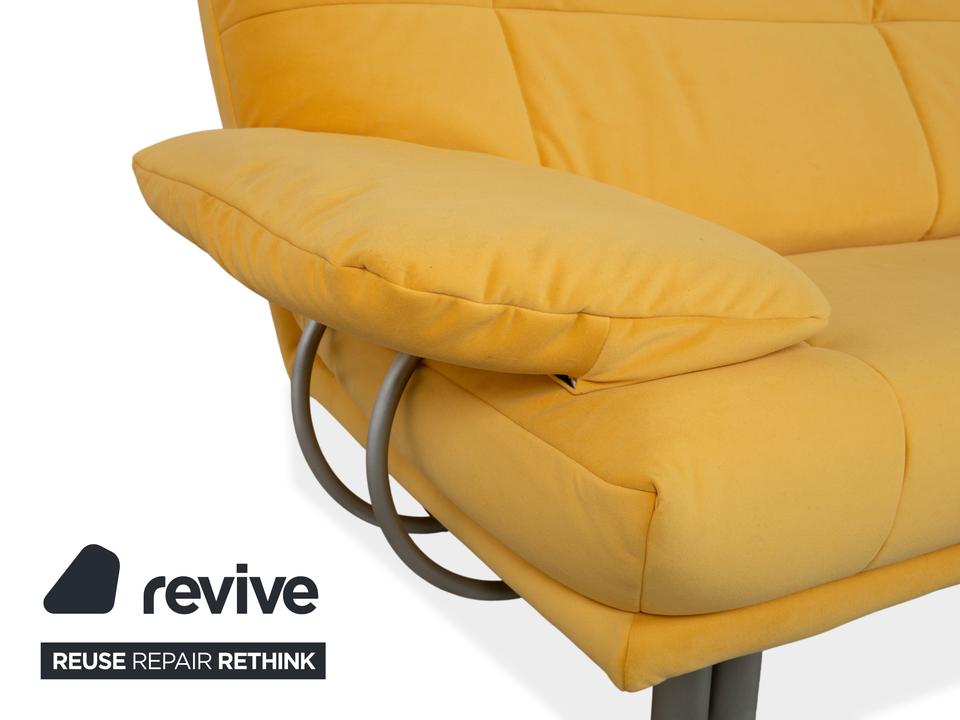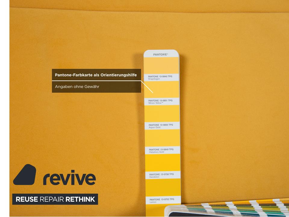 Das Rolf Benz BMP 418 ist ein echter Design-Klassiker, der durch seine markante, nach außen gewölbte Linienführung sofort ins Auge fällt. Die markanten Metall-Stützen an den Seiten sind dabei das absolute Highlight: Sie schmiegen sich perfekt an die schrägen Armlehnen an und geben dem Sofa diesen unverwechselbaren, kantigen Look, während die eigentlichen Füße dezent im Hintergrund bleiben. In dieser Zweisitzer-Ausführung aus gelbem Stoff wirkt das Möbelstück extrem präsent und souverän im Raum, ohne dabei seine einladende Art zu verlieren.Uns fasziniert an diesem Entwurf besonders, wie es der Designerin Anita Schmidt gelang, diesen ikonischen Kontrast zwischen dem kompakten Korpus und den fließenden Linien einzufangen. Es ist das ideale Herzstück für alle, die ein kompaktes Sitzmöbel mit Charakter suchen, das sich mühelos in einen modernen Wohnstil einfügt. Da es sich um einen Neubezug mit dem hochwertigen Stoff AMILIO 318 handelt, profitierst du von einem optisch und hygienisch makellosen Zustand. Du kannst dich also darauf verlassen, dass du mit diesem Möbel eine absolut mackenfreie und saubere Sitzfläche erhältst.Neubezug: AMILIO 318