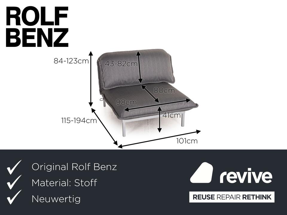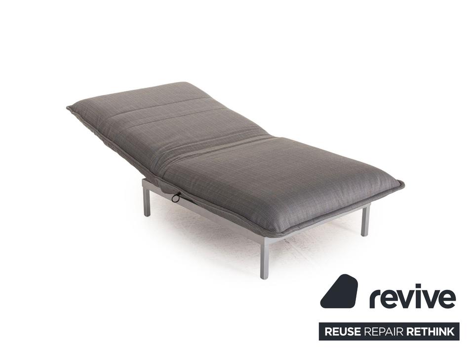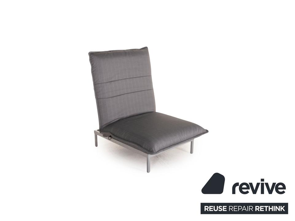 Der Nova Sessel von Rolf Benz ist mit einem grauen, robusten Stoff neu bezogen (ELBA 796 Fleckschutzausrüstung „Clean active“ Material: 100% Polypropylen) und steht auf schmalen, silbernen Füßen. Seine komfortable Relaxfunktion, mit der sich der Sessel zur Liege umfunktionieren lässt und das schlichte Design zeichnen den Sessel aus.