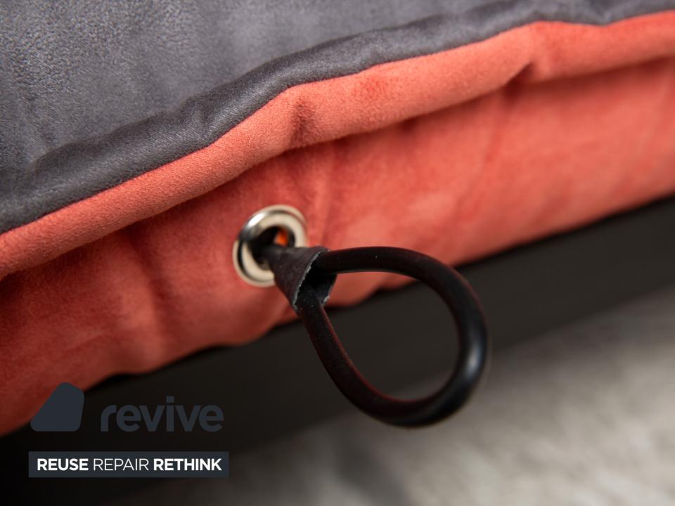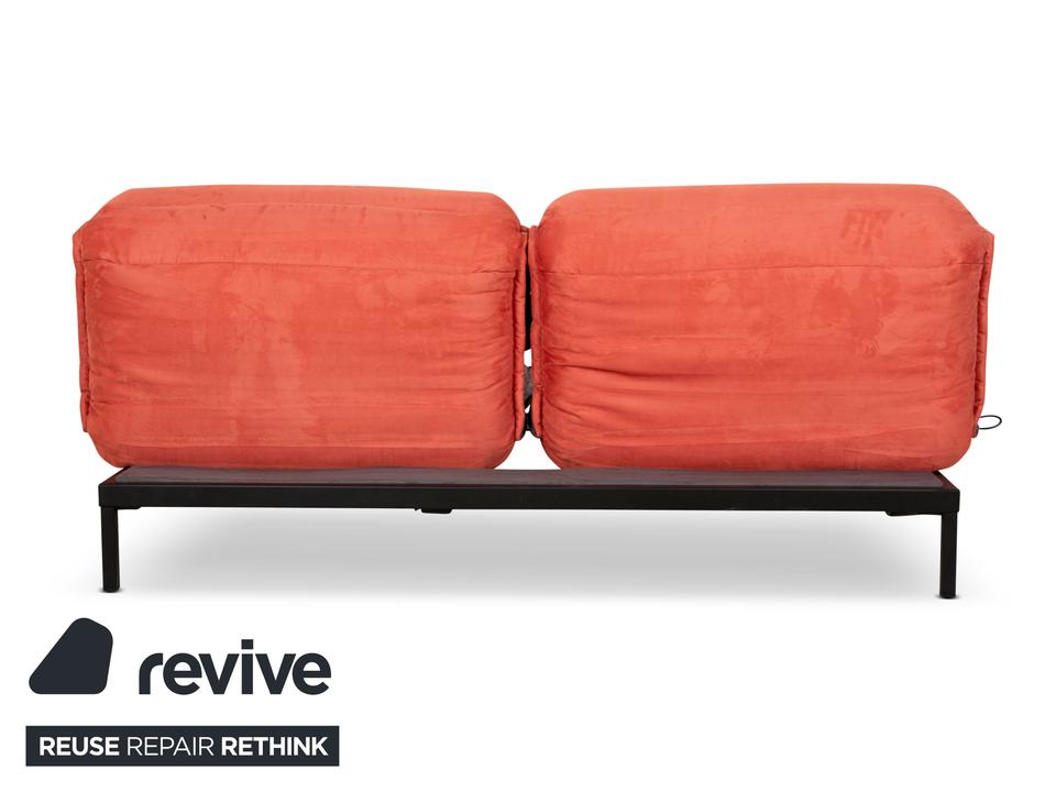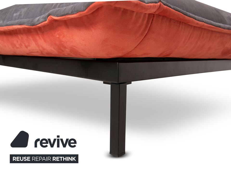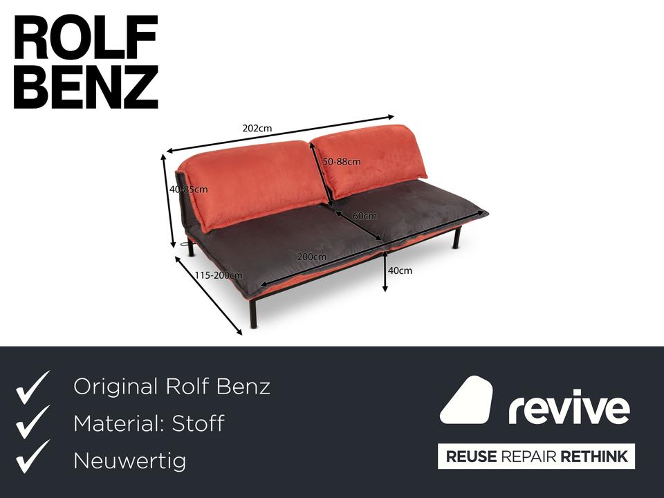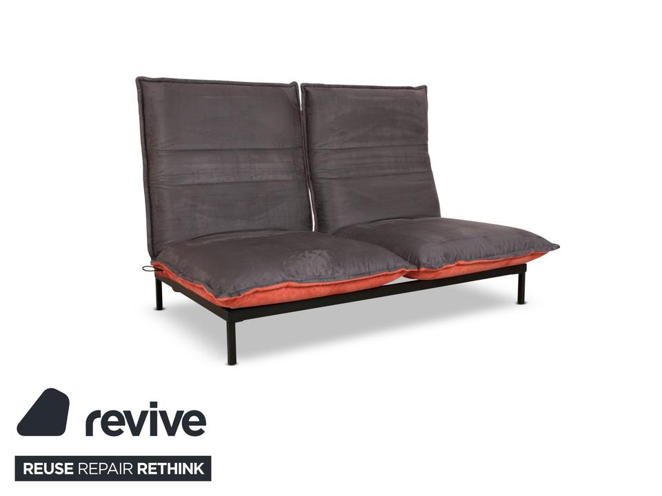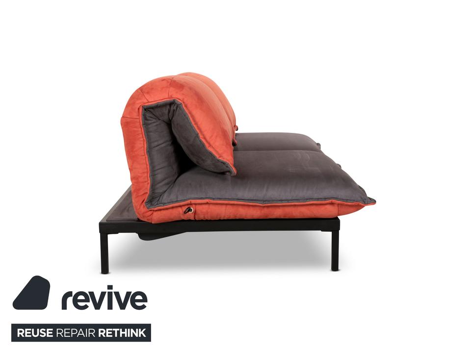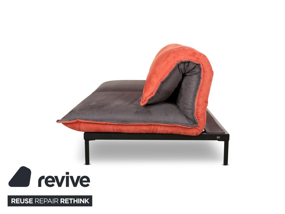 Das Sofa Nova von Rolf Benz ist mit einem hochwertigen Grau-Orangen Stoff von Höpke bezogen (Denver) und steht auf einem schwarz-matten Metallgestell. Ein luftiges Design und die Dominanz der Polster zeichnen den Zweisitzer aus. Das Sofa bietet höchsten Komfort und eine Relaxfunktion. Dadurch ist das Sofa multifunktional.Das Sofa muss durch den praktischen Sitzvorschub nur 45cm entfernt von der Wand stehen, um die Schlaffunktion komplett ausklappen zu können.