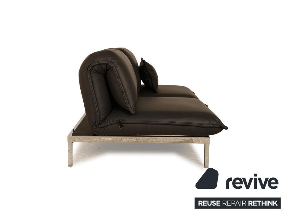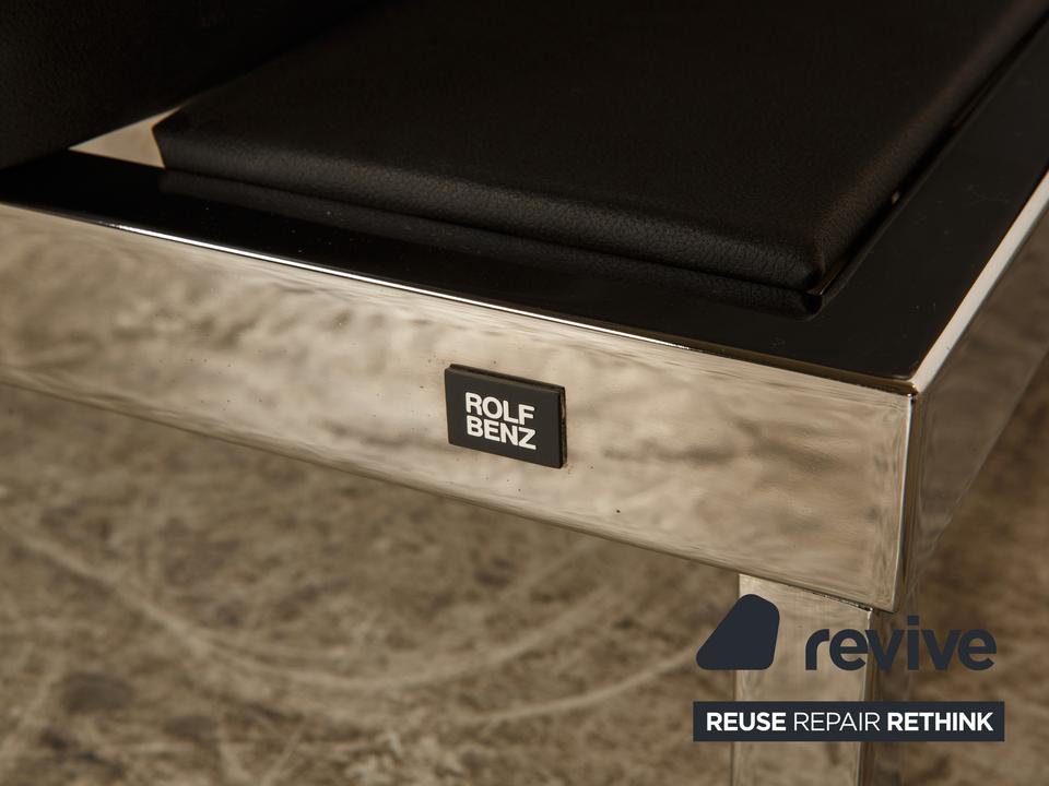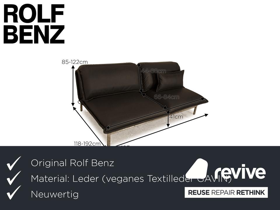 Das Sofa Nova von Rolf Benz ist mit einem hochwertiges schwarzen veganem Leder von Höpke bezogen (GAVIN, Mikrofaser) und steht auf einem glänzenden Metallgestell. Ein luftiges Design und die Dominanz der Polster zeichnen den Zweisitzer aus. Das Sofa bietet höchsten Komfort und eine Relaxfunktion. Dadurch ist das Sofa multifunktional.
