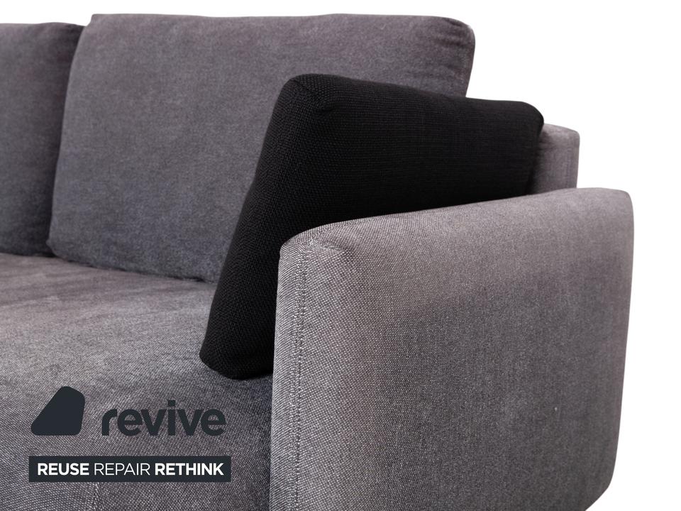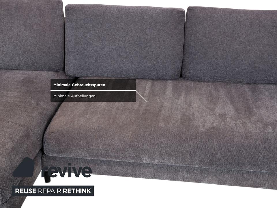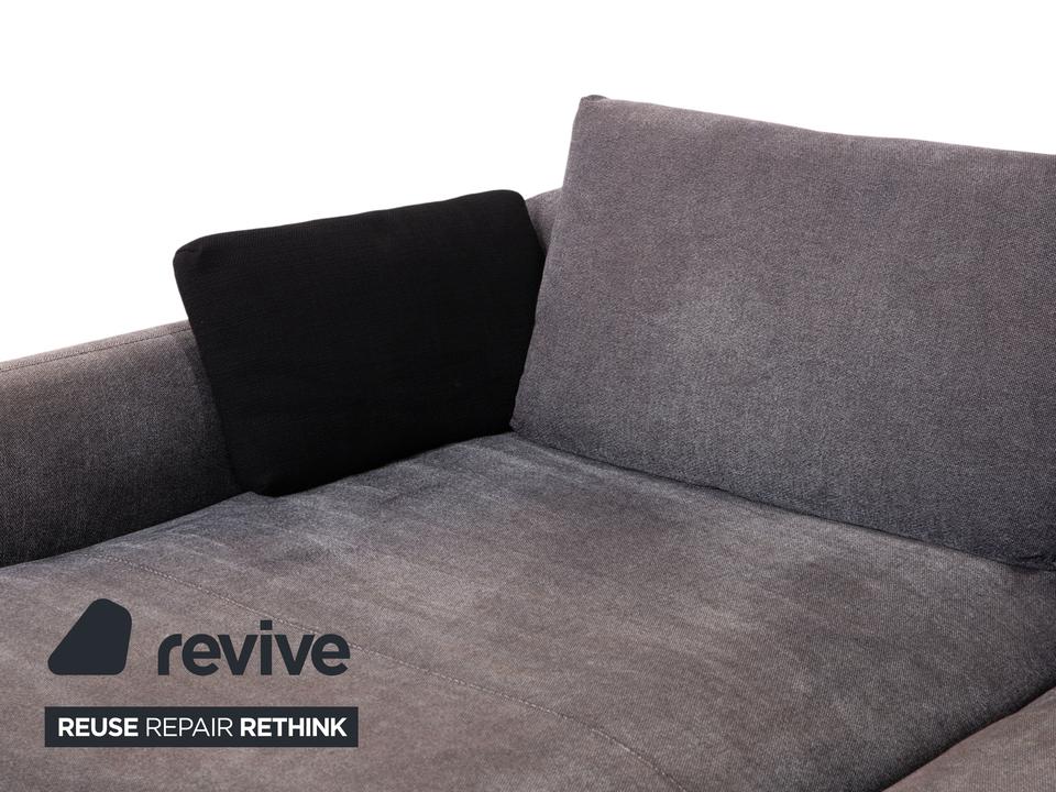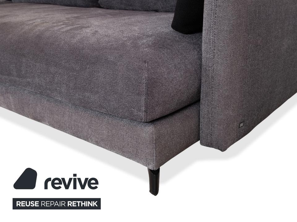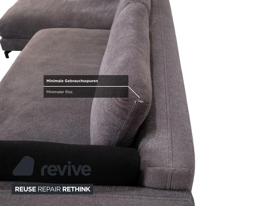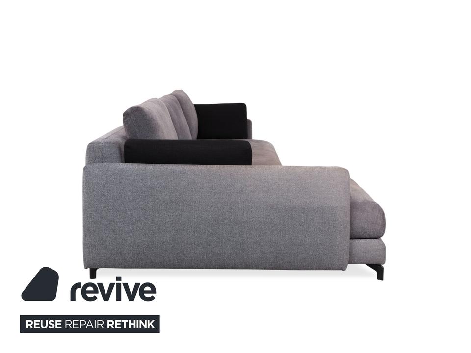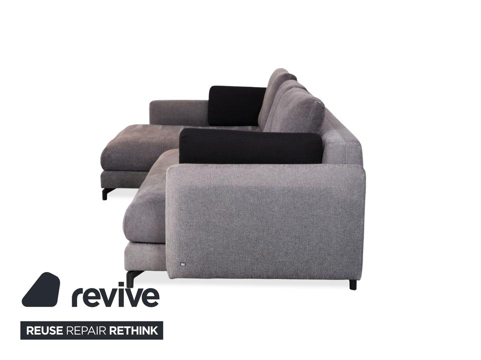 Rolf Benz Nuvola: Luxuriöses Loungen wie auf WolkenDer Name ist hier Programm: „Nuvola“ ist italienisch für Wolke, und genau dieses Gefühl vermittelt dieses exklusive Ecksofa von Rolf Benz. Es ist der Inbegriff des modernen „Lounge-Looks“ – lässig, großzügig und unglaublich bequem.Das Sofa ist in einen hochwertigen, grauen Stoff gehüllt, der eine feine, lebendige Struktur aufweist. Dieser Farbton ist ein echter Alleskönner: Er wirkt edel, strahlt Ruhe aus und lässt sich vielseitig kombinieren. Die Formensprache ist bewusst weich und leger gehalten. Die großzügigen Sitz- und Rückenkissen laden dazu ein, sich einfach fallen zu lassen. Ein stilvolles Detail sind die dunklen (schwarzen) Akzentkissen in den Ecken, die einen spannenden Kontrast zum grauen Bezug bilden und die Tiefe des Sofas betonen.Trotz der üppigen Polsterung wirkt das Nuvola nicht schwerfällig. Dafür sorgen die filigranen, schwarzen Metallfüße, die fast unsichtbar unter dem Korpus sitzen und das Sofa optisch schweben lassen. Die Aufteilung bietet maximalen Komfort: Auf der linken Seite befindet sich eine breite Recamiere, die perfekt für entspannte Abende ist, während der rechte Schenkel viel Platz für Familie und Gäste bietet.