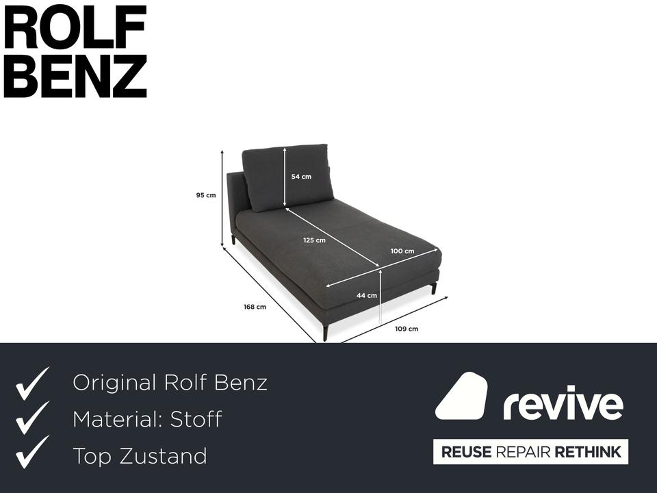 Mit der Liege „Nuvola“ (italienisch für „Wolke“) von Rolf Benz holst du dir himmlische Entspannung in dein Zuhause. Dieses Möbelstück steht für einen neuen, lässigen Luxus: Es ist nicht steif, sondern weich, einladend und großzügig geschnitten.Der dunkelgraue Stoffbezug wirkt sehr edel, unempfindlich und fügt sich als moderner Ruhepol in fast jeden Raum ein. Ein besonderes Highlight ist die legere „Lounge-Optik“: Die üppige Polsterung und das große, lose Rückenkissen laden dich förmlich dazu ein, dich fallen zu lassen, die Füße hochzulegen und den Alltag zu vergessen. Getragen wird die Recamiere von filigranen, schwarzen Metallfüßen, die dem voluminösen Polster eine wunderbare Leichtigkeit und Bodenfreiheit verleihen. Ein perfekter Solitär, um in einer ruhigen Ecke ein Buch zu lesen oder einfach abzuschalten.
