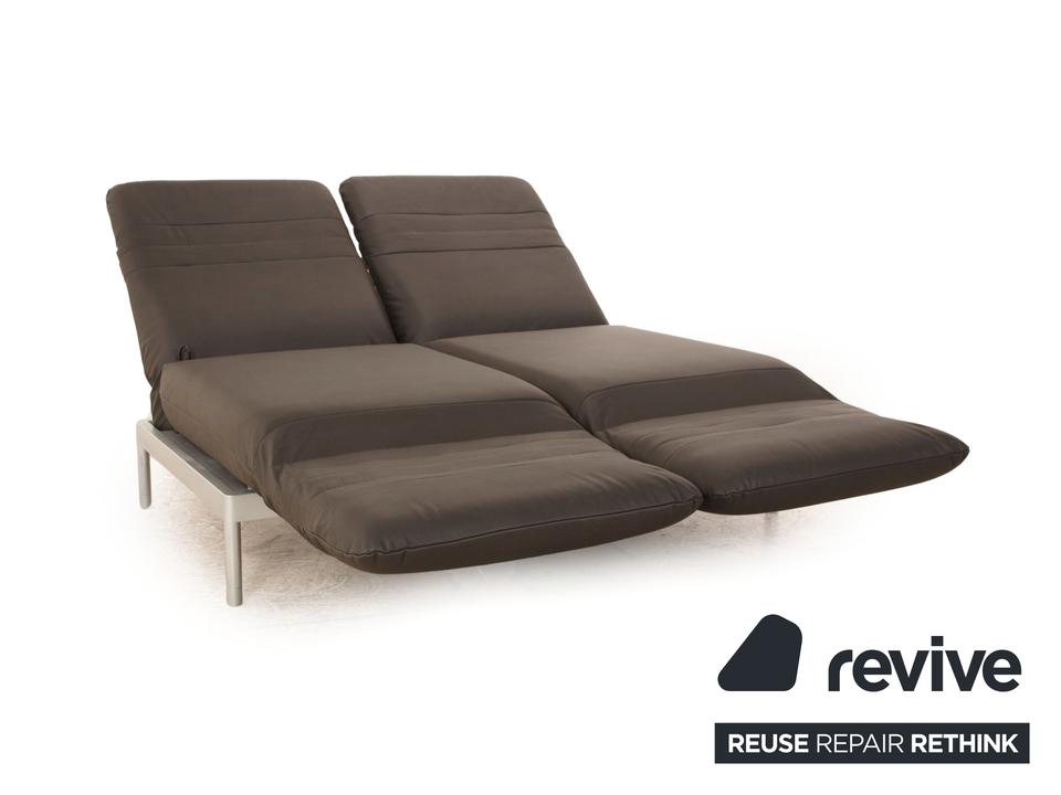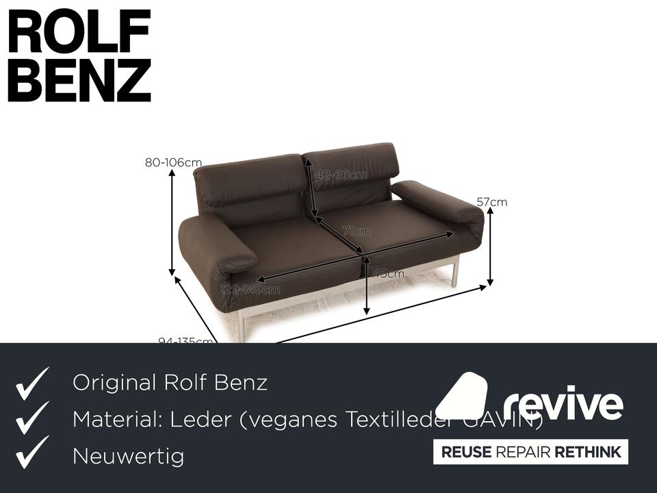 Das Plura Sofa ist mit einem grauen, veganen Textilleder von Gavin bezogen und steht auf Metallfüßen. Der Zweisitzer überzeugt mit seinem extravaganten Design und den vielfältigen Verstellmöglichkeiten.