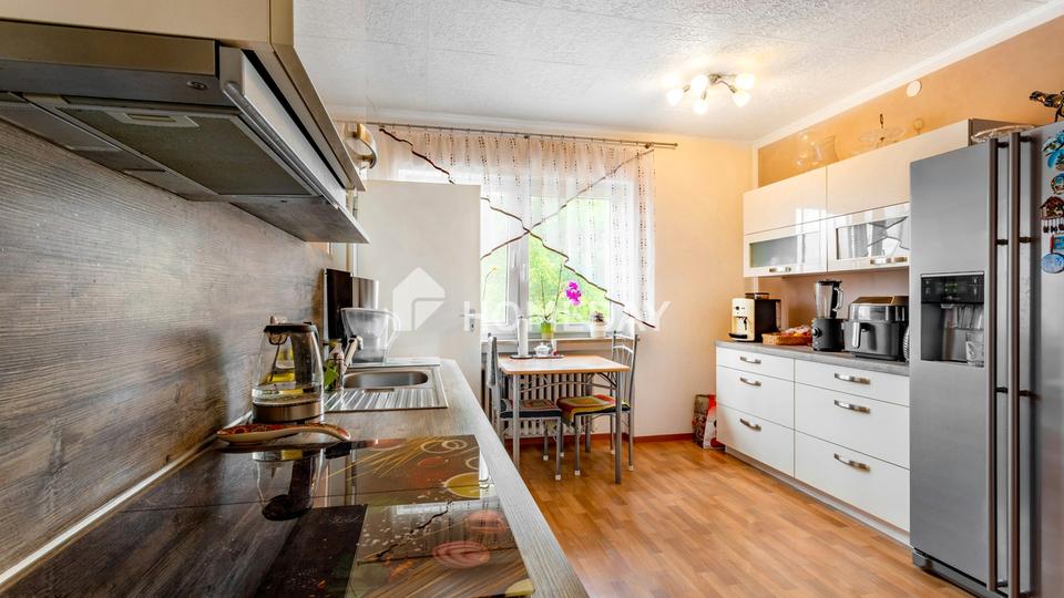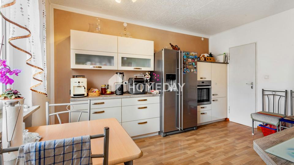 Eine hochwertige Einbauküche ist bereits im Kaufpreis enthalten. Zusätzlich sorgen drei praktische Abstellräume sowie ein voll unterkellerter Bereich für reichlich Stauraum und Nutzungsmöglichkeiten. Abgerundet wird das Angebot durch eine Garage, die für komfortables Parken direkt am Haus sorgt.