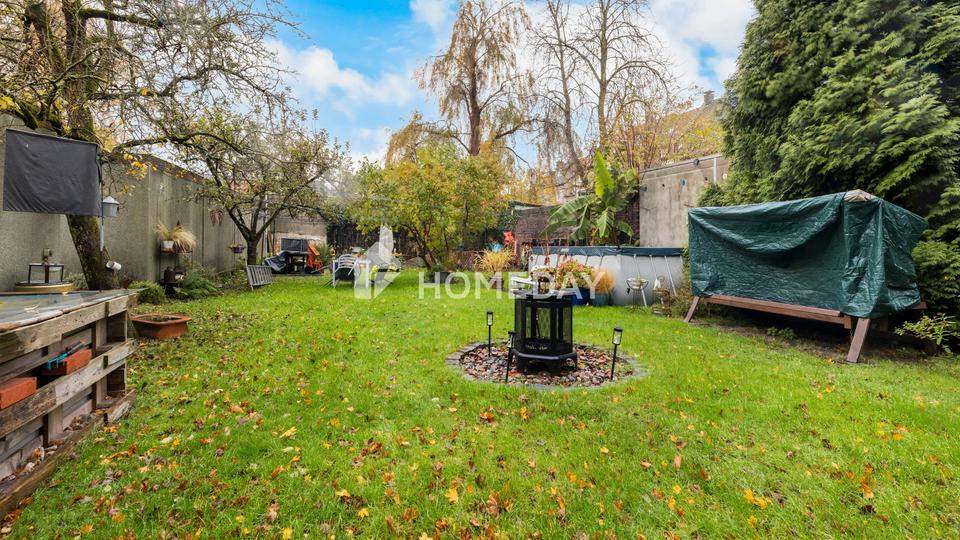 Die Immobilie befindet sich in einer angenehmen und ruhigen Wohnlage im Stadtteil Gelsenkirchen-Erle, einer bevorzugten Gegend mit familiärem Charakter und guter Infrastruktur. Das Umfeld ist geprägt von gepflegten Wohnhäusern, kleinen Gärten und gewachsener Nachbarschaft, wodurch sich die Lage besonders für Familien und Paare eignet. Der Ortskern von Erle mit seinen zahlreichen Geschäften, Ärzten, Banken und Gastronomiebetrieben liegt nur etwa 600 Meter entfernt und ist bequem fußläufig erreichbar. Das Gelsenkirchener Stadtzentrum erreicht man in rund 10 Fahrminuten (ca. 5 Kilometer), während die Innenstädte von Buer und Recklinghausen ebenfalls in etwa 10 bis 15 Minuten zu erreichen sind.