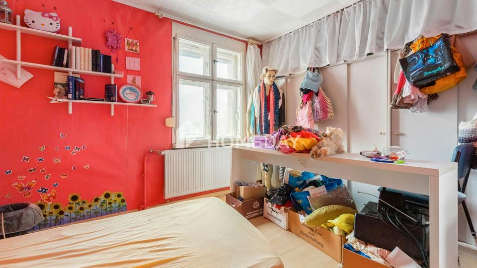 Im Obergeschoss befinden sich weitere Zimmer, die sich flexibel als Schlaf-, Kinder- oder Arbeitszimmer nutzen lassen. Das Tageslichtbad ist mit einer Badewanne und einem Handtuchwärmer ausgestattet, bedarf jedoch ebenso wie weitere Bereiche des Hauses einer Renovierung. Insgesamt befindet sich die Immobilie in einem sanierungsbedürftigen Zustand. Insbesondere die Elektrik und die Wasserleitungen sollten erneuert werden, zudem sind stellenweise Feuchtigkeitsspuren beziehungsweise Schimmel vorhanden. Auch die Ölzentralheizung aus dem Jahr 1990 entspricht nicht mehr dem heutigen Stand der Technik, sodass sich im Zuge einer Modernisierung die Umstellung auf eine zeitgemäße, energieeffiziente Heizlösung anbietet. In diesem Zusammenhang könnten auch weitere energetische Maßnahmen wie eine Fassaden- oder Dachdämmung in Betracht gezogen werden, um das Haus nachhaltig aufzuwerten.