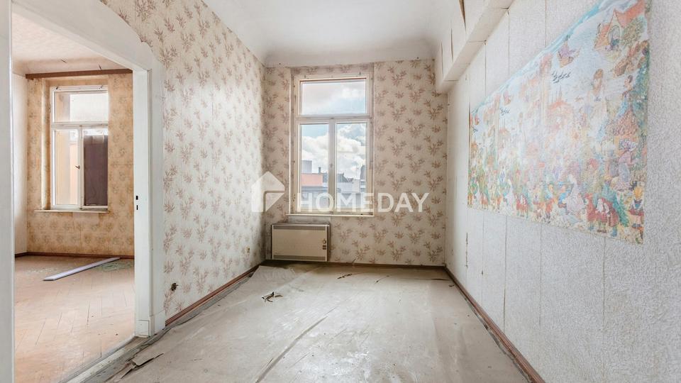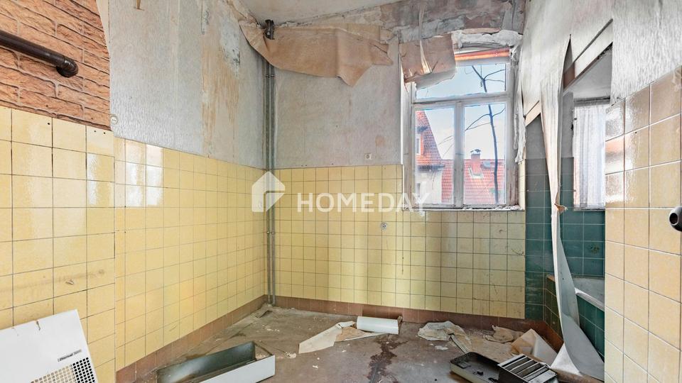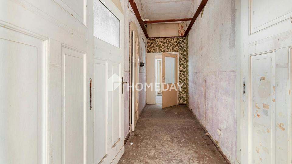 Schon beim Betreten des Hauses spürt man den besonderen Charme des Altbaus: Hohe Decken, großzügige Raumfolgen und klassische Grundrisse bieten viel Potenzial für individuelle Sanierungskonzepte. Die exemplarisch dargestellte Wohnung auf den Fotos verdeutlicht den sanierungsbedürftigen Zustand – und zugleich das große Entwicklungspotenzial dieser Immobilie.