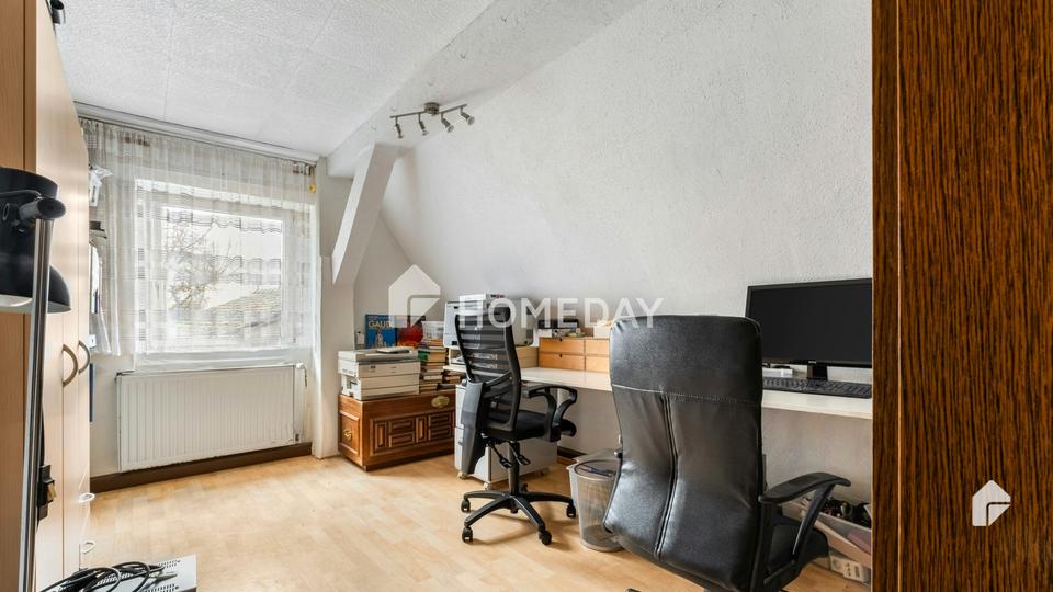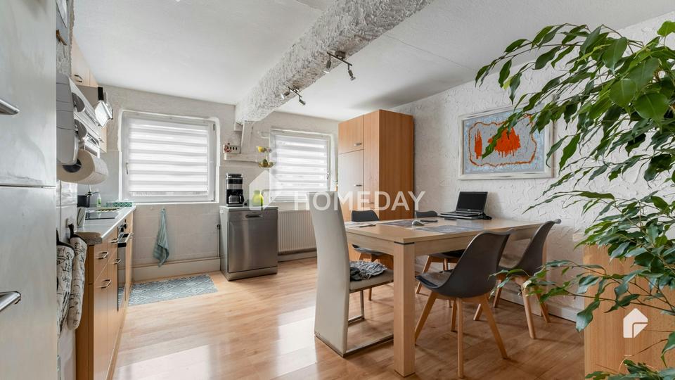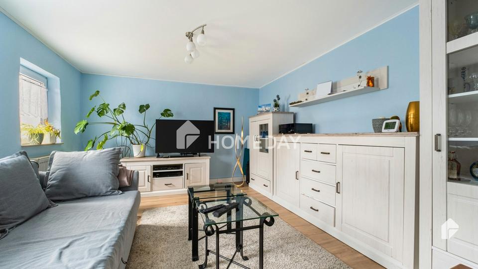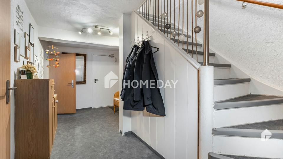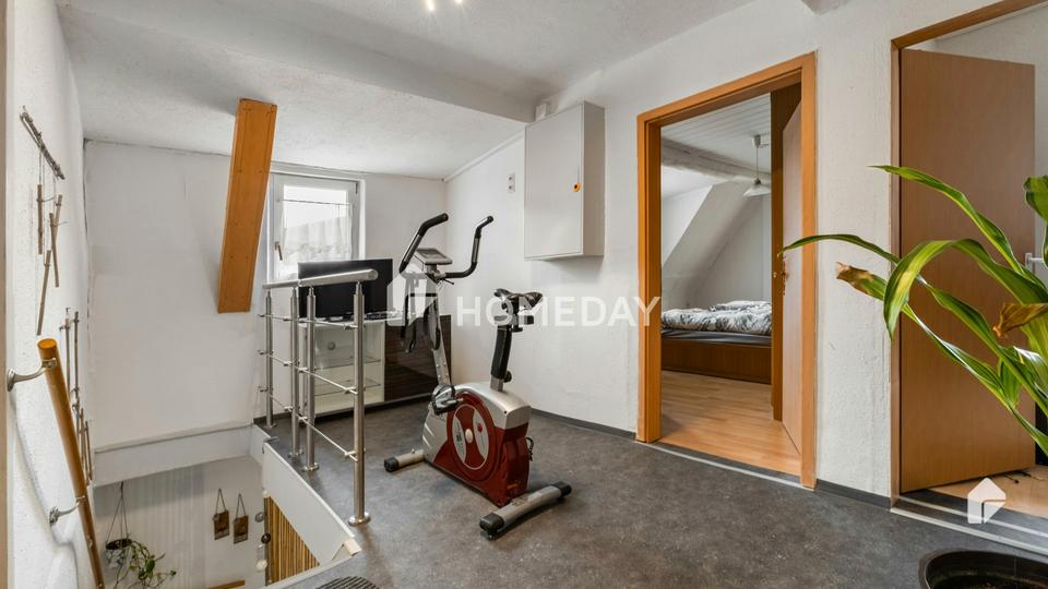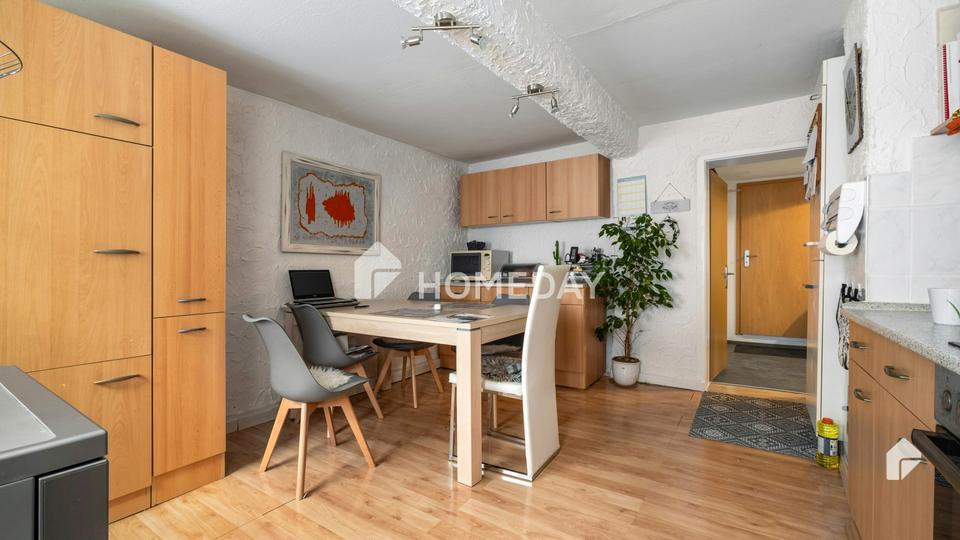 Die Immobilie hat eine Größe von circa 129 Quadratmetern Wohnfläche, die sich auf sechs Zimmer verteilt. Für den nötigen Stauraum sorgt ein Vollkeller. Im Inneren des Hauses erwartet Sie eine solide Ausstattung. Die Küche ist mit einer zweckmäßigen Einbauküche samt Elektrogeräten ausgestattet und bietet ausreichend Platz für Sitzgelegenheiten.