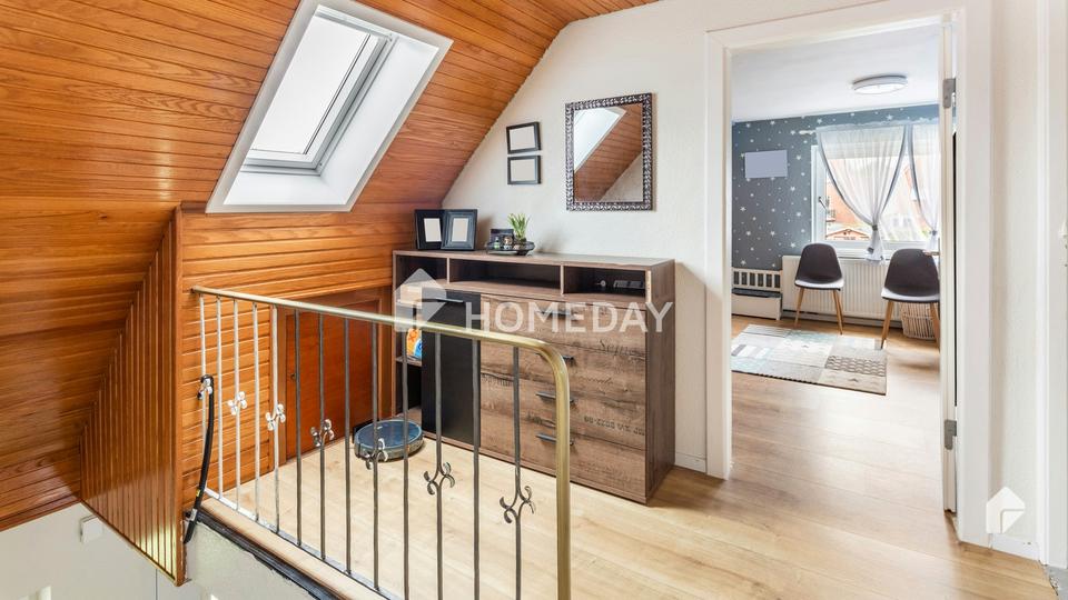 Die umliegenden Feld- und Wiesenlandschaften liegen in gerade einmal 500 Metern Entfernung, wartet dieses gepflegte Einfamilienhaus auf Sie. Auf dem ca. 371 Quadratmeter großen, blickgeschützten Grundstück befinden sich neben dem Haus ein Garten, eine Terrasse, eine Dachterrasse und eine Garage sowie ein Stellplatz im Freien.