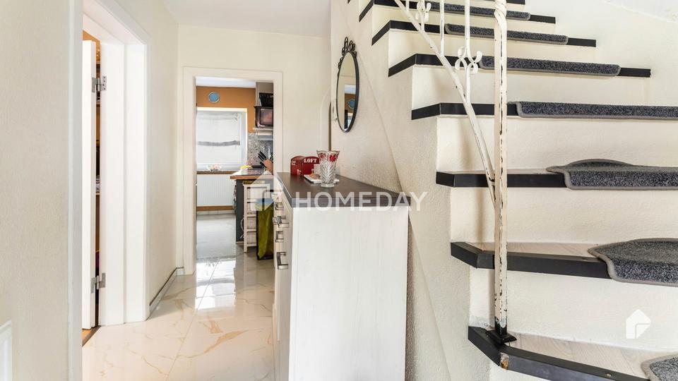 Doch treten wir ein! Die Immobilie hat eine Größe von ca. 123 Quadratmetern Wohnfläche, die sich auf fünf Zimmer verteilt. Im Vollkeller befinden sich weitere Unterbringungsmöglichkeiten.