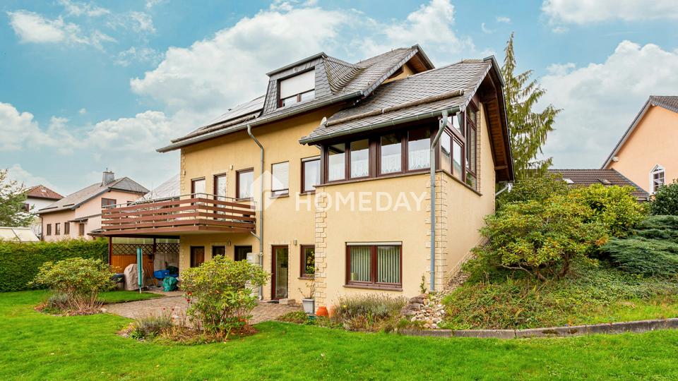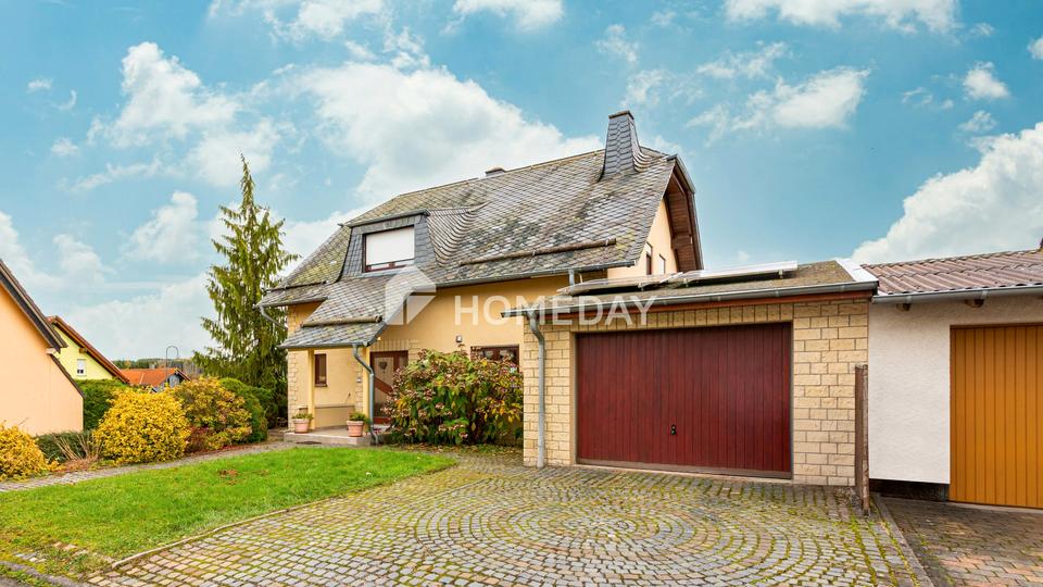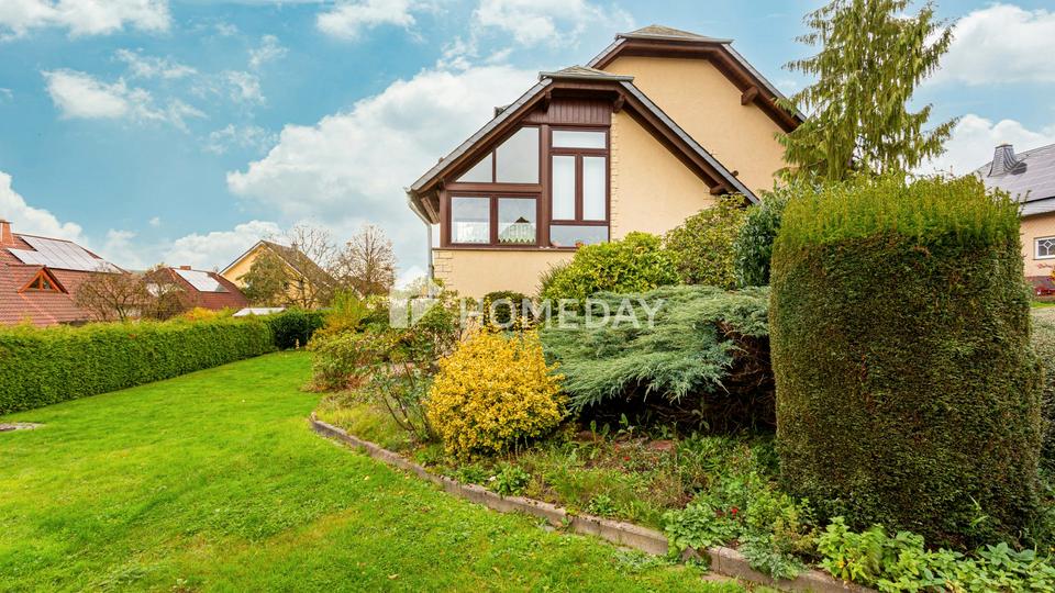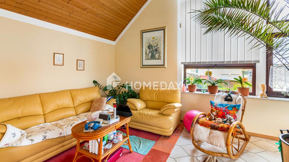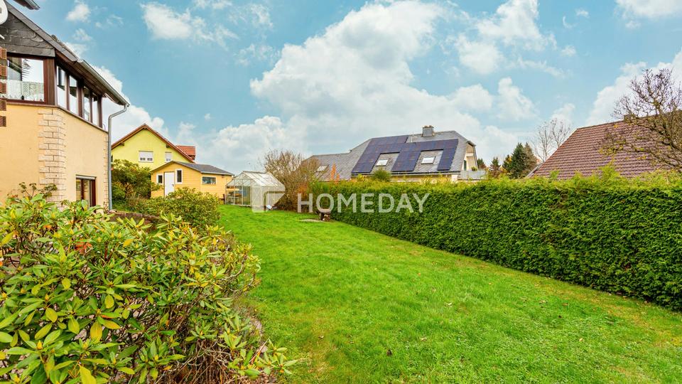 Dieses großzügige Einfamilienhaus überzeugt durch seine solide Bauweise, seine gepflegte Erscheinung und eine durchdachte Raumaufteilung über drei Ebenen. Auf einem ca. 761 Quadratmeter großen, eingewachsenen Grundstück gelegen, bietet die Immobilie neben einer sonnigen Terrasse, einem Balkon und einem Wintergarten auch eine Garage, ein Gewächshaus und einen Stellplatz im Freien. Der liebevoll angelegte Garten lädt zum Entspannen und Gärtnern ein und bietet viel Privatsphäre.