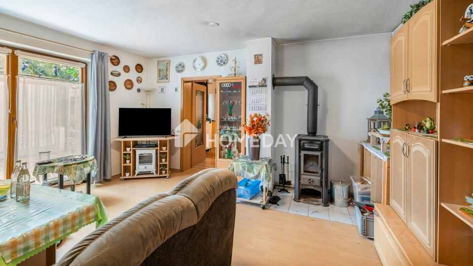 Das Gebäude zeigt sich in einem gepflegten Zustand, wenngleich Modernisierungsmaßnahmen empfehlenswert sind, um das volle Potenzial auszuschöpfen. Geheizt wird über eine Ölzentralheizung, zusätzlich sorgen Kamine in den Wohnzimmern für eine gemütliche Atmosphäre. Die verbauten Holzfenster sind doppelt verglast und wärmeisoliert. Die Bäder verfügen über Tageslicht und sind unter anderem mit Badewannen ausgestattet. Ein klassisches, gepflegtes Gesamtbild, das sich mit überschaubarem Aufwand modernisieren lässt.