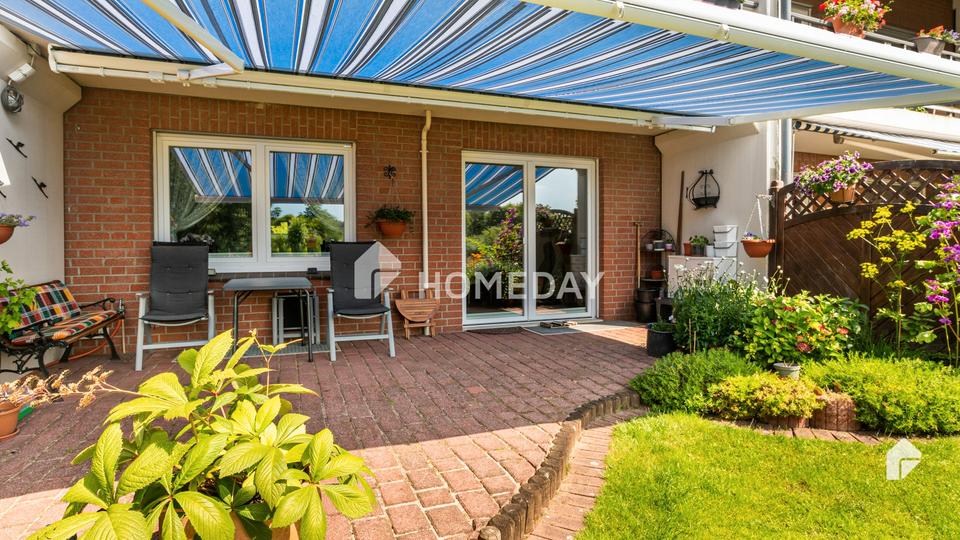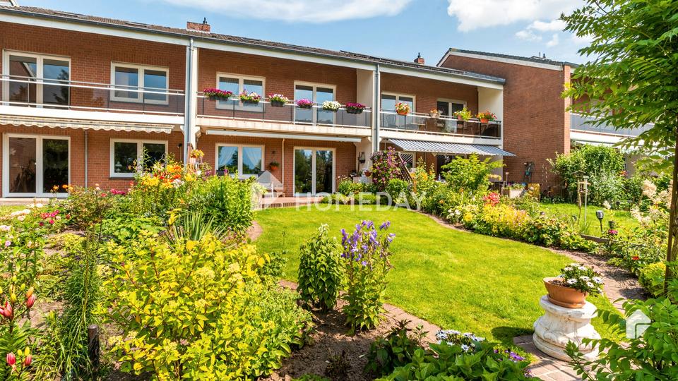 Der pflegeleichte, schön gestaltete Garten bietet ausreichend Platz für die Familie und bietet einen tollen Ausblick auf die dahinterliegende Natur und die Uferwiesen. Die sonnige Terrasse ist nach Westen ausgerichtet. Hier lässt es sich bequem entspannen. Zudem wartet eine Loggia im ersten Obergeschoss.