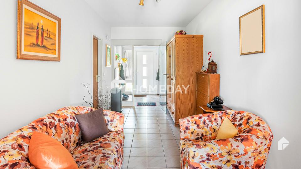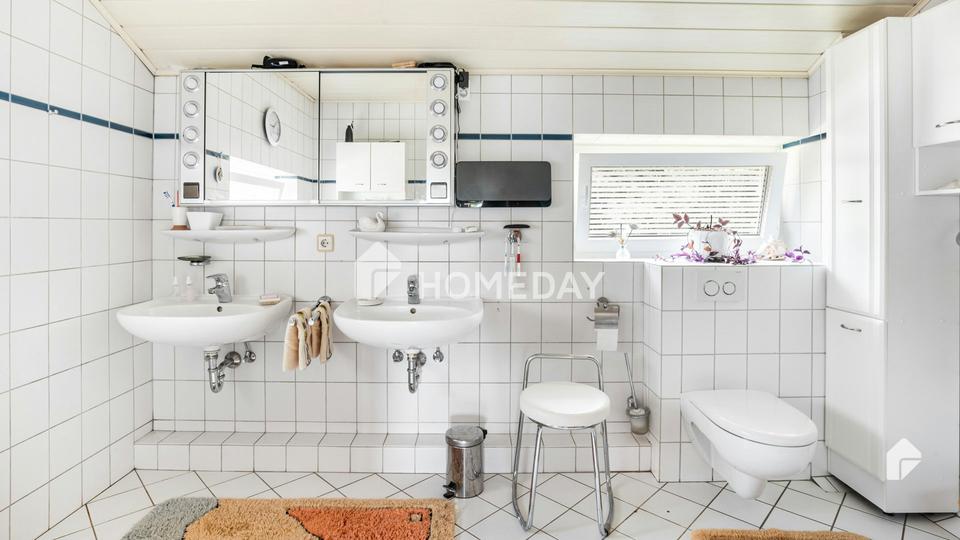 Das Haus präsentiert sich im Inneren mit gehobener Ausstattung. Die Räume sind hell und gepflegt. Das große Duschbad ist mit einem Fenster ausgestattet, sodass Tageslicht und Luftaustausch gewährleistet sind. Zusätzlich gibt es ein Gäste-WC.
