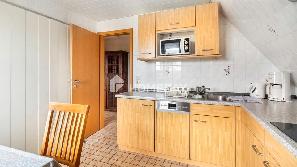 • Spitzboden über Treppe erreichbar, zusätzliche Stellfläche