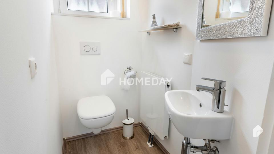• Eine moderne Gaszentralheizung aus dem Jahr 2021, die das Haus über Flachheizkörper effizient mit Wärme versorgt. Der Energieverbrauch kann dem Energieausweis entnommen werden.