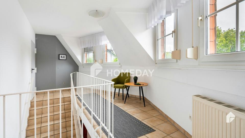• Wohnräume, die mit einer Kombination aus Fliesen und Laminatböden ausgestattet sind, was für eine angenehme und pflegeleichte Wohnatmosphäre sorgt.