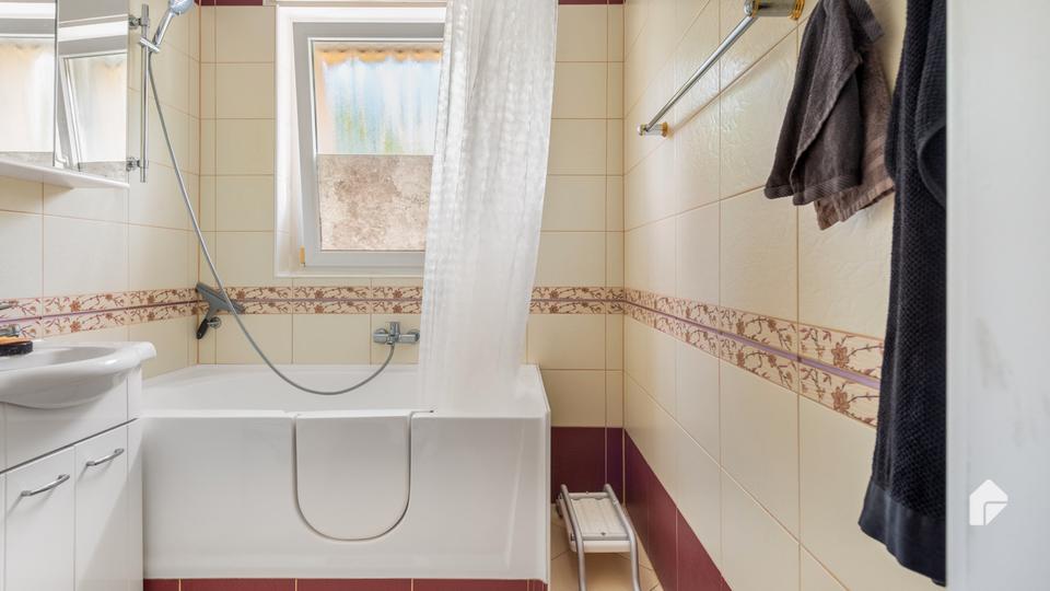 Die Küche ist mit einer voll funktionsfähigen Einbauküche samt Markengeräten ausgestattet, die höchsten Ansprüchen gerecht wird. Diese bestens ausgestattete Küche ist ideal für kulinarische Abende und inspiriert zu kreativen Kochabenteuern. Das Tageslichtbad mit Badewanne lädt zum Entspannen ein und bietet Ihnen einen ruhigen Ort, um den Tag ausklingen zu lassen.