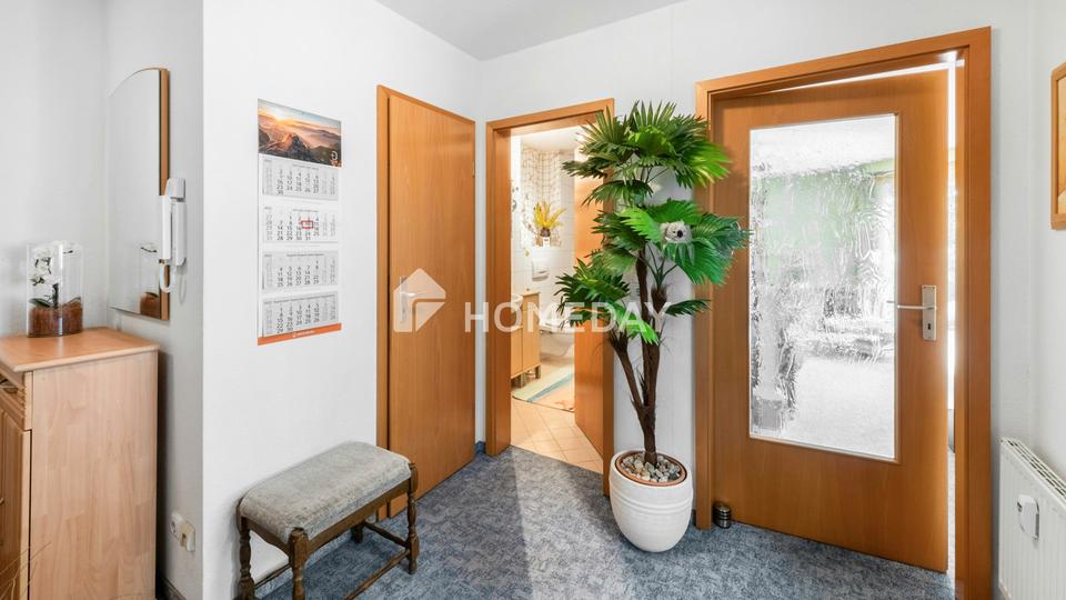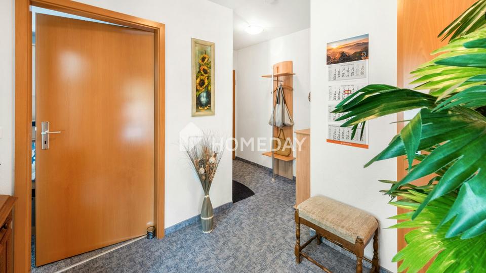 Bereits beim Eintreten empfängt Sie ein freundlich gestalteter Flur, der ein angenehmes Raumgefühl vermittelt. Von hier aus gelangen Sie bequem in alle Wohnbereiche. Praktisch und durchdacht: Ein separater Abstellraum im Eingangsbereich bietet zusätzlichen Stauraum.