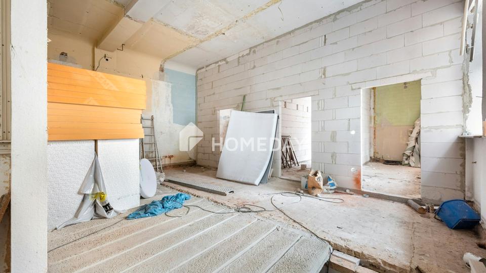 • Entkernung im Erdgeschoss bereits begonnen – ideale Grundlage für individuelle Ausbaukonzepte