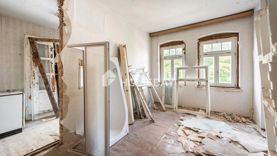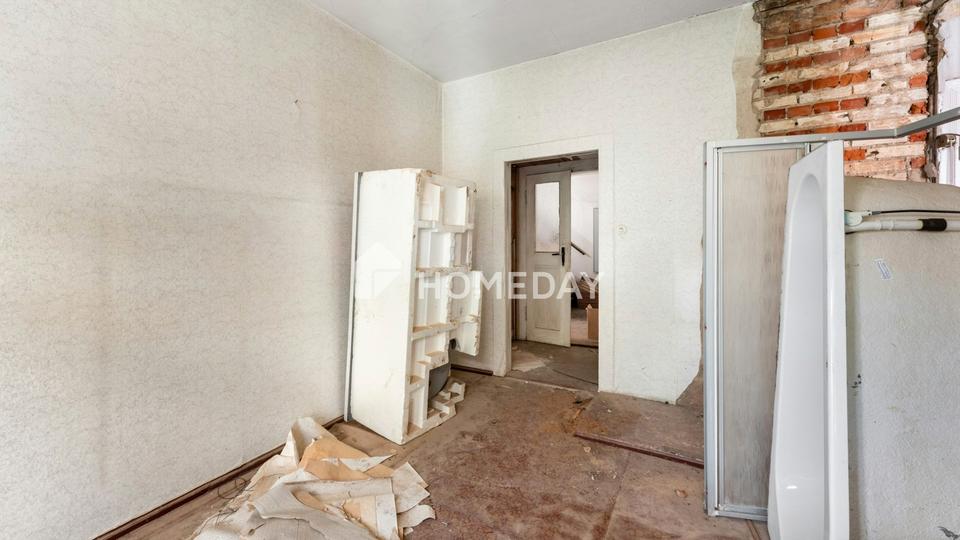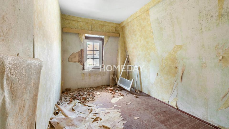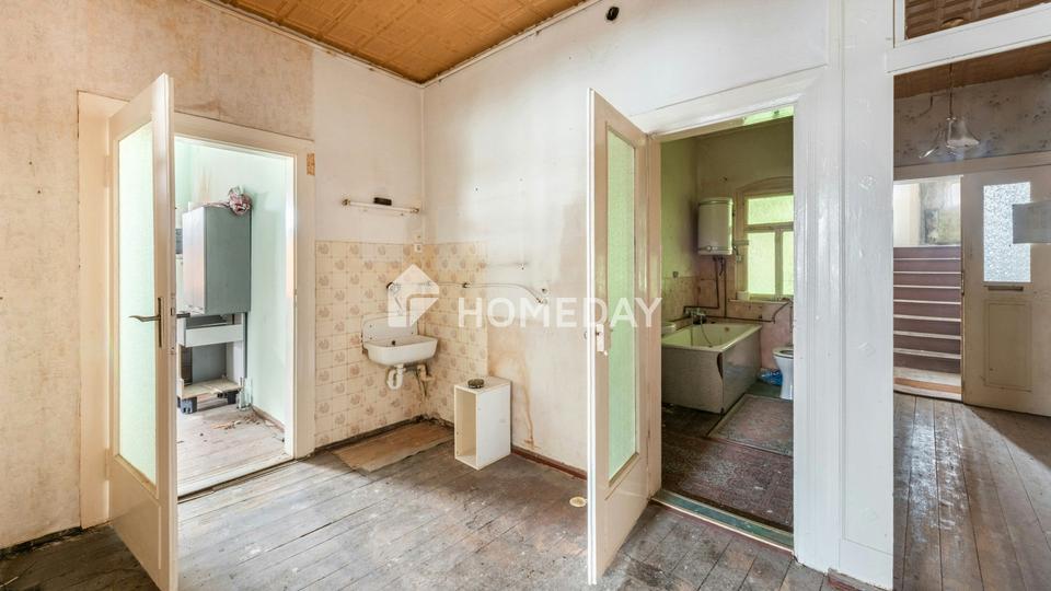 Die Sanierung steht zwar noch bevor, doch die vorhandene Struktur überzeugt: solide Bausubstanz, klassisches Ziegeldach mit ausbaubarem Dachgeschoss, großzügige Raumaufteilung – all das spricht für eine lohnende Investition mit Gestaltungsfreiheit.