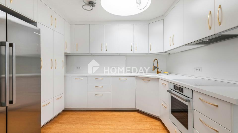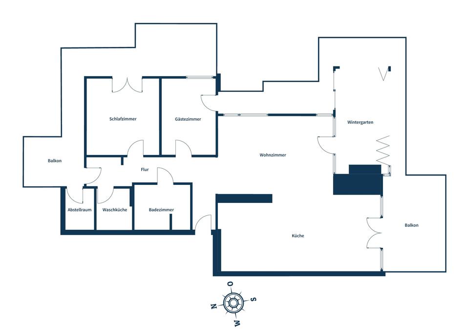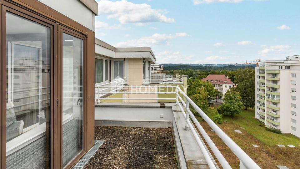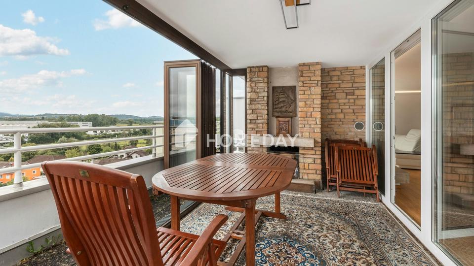 Der angrenzende Wintergarten ist ein weiteres Highlight dieser Immobilie: Großzügig gestaltet, lässt er sich mit wenigen Handgriffen vollständig zum Balkon hin öffnen und verschmilzt so mit der angrenzenden Außenfläche. Zwei Balkone – Nord-, Ost- und Südbalkon – bieten den ganzen Tag über Sonne und einzigartige Ausblicke. Alle Wohn- und Schlafräume verfügen über einen direkten Zugang zu einem der beiden Außenbereiche.