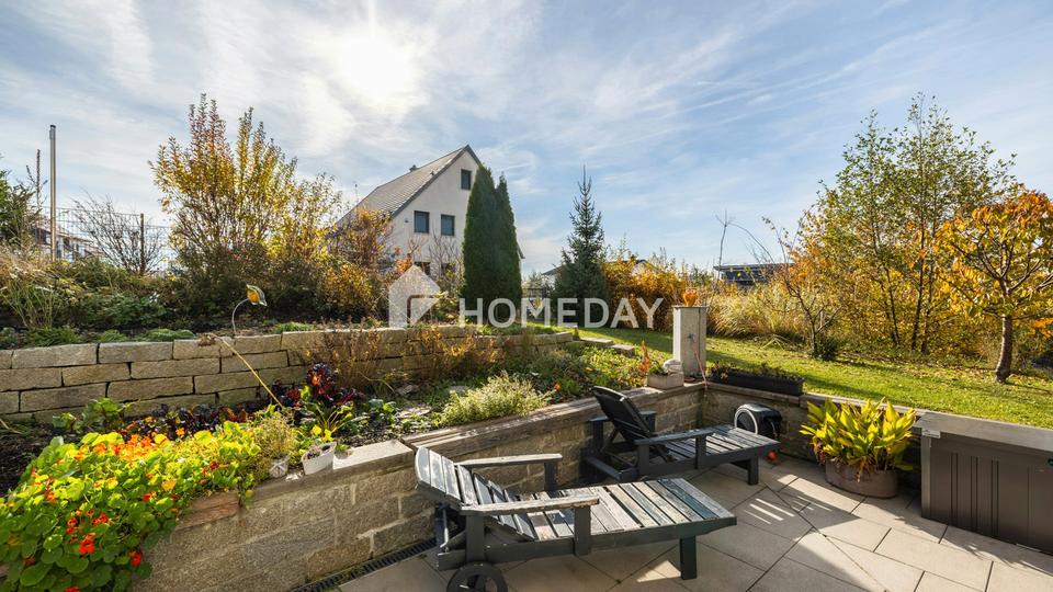 Schon beim Betreten des Außenbereichs zeigt sich der besondere Charakter dieses 2013 erbauten Einfamilienhauses. Auf einem ca. 633 Quadratmeter großen Grundstück eröffnet sich ein liebevoll gepflegter Garten, der dank Terrasse und Wintergarten zu jeder Jahreszeit zum Entspannen einlädt. Dank der Hanglage und des Untergeschosses ergeben sich interessante und individuelle architektonische Möglichkeiten. Eine direkt ans Haus angeschlossene Doppelgarage bietet neben zwei weiteren Außenstellplätzen zusätzlichen Komfort und schützt Ihr Fahrzeug bei jedem Wetter.