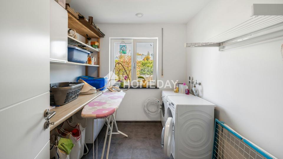 Das Herzstück des Hauses bildet das großzügige Wohnzimmer mit Kachelofen, der an kalten Tagen für behagliche Stunden sorgt und zugleich durch seine offene, helle Gestaltung begeistert. Die hochwertige Gasheizung und die integrierte Solaranlage garantieren ein effizientes und zeitgemäßes Energiekonzept. Zu den weiteren Highlights zählen neben einer Fußbodenheizung auch die hauseigene Sauna, welche den Wohlfühlfaktor dieses besonderen Domizils vollends abrundet.