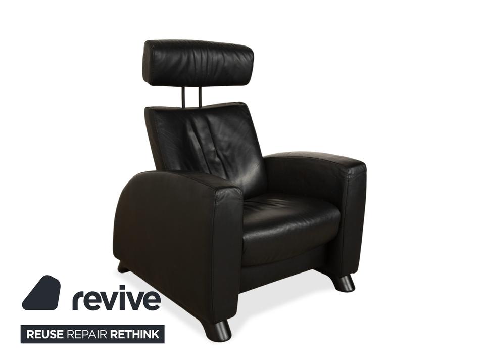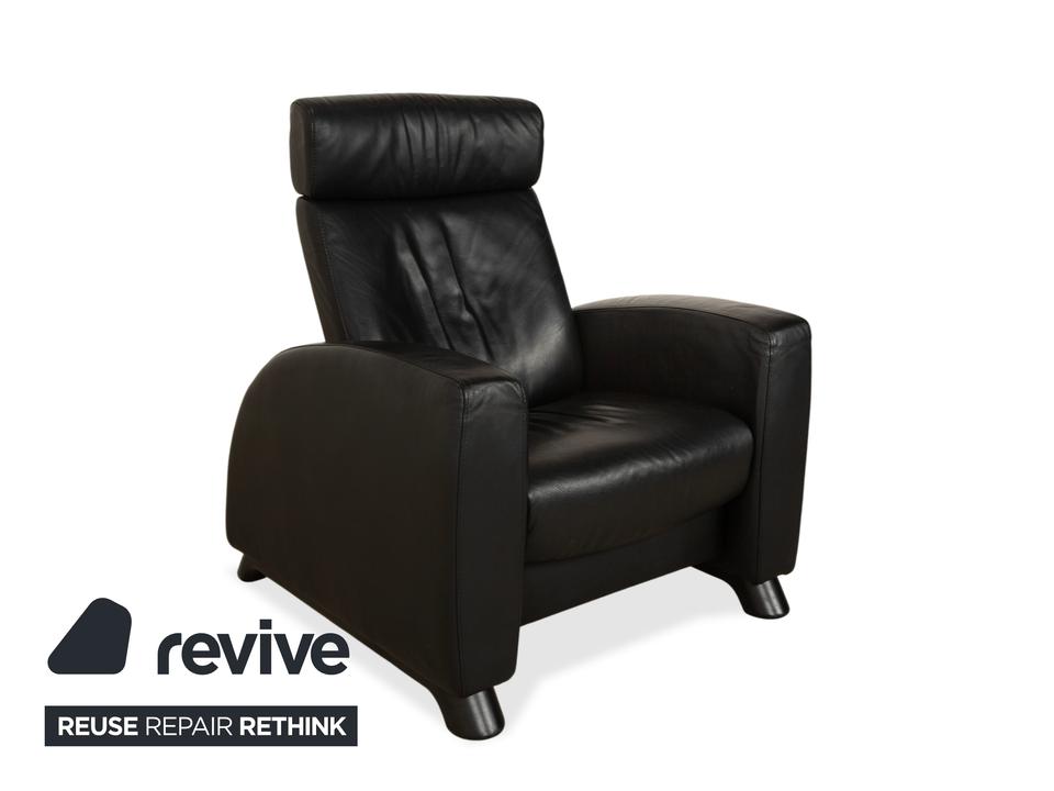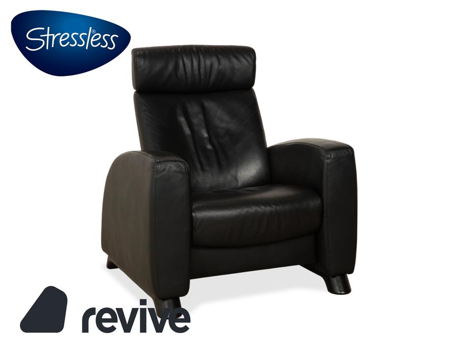 Stressless Arion: Dein persönlicher LogenplatzDieser Sessel bringt echtes Heimkino-Feeling in dein Wohnzimmer. Das Modell „Arion“ von Stressless ist bekannt für seine gelungene Mischung aus modernem Design und dem berühmten norwegischen Sitzkomfort.Der Sessel ist in zeitloses, schwarzes Leder gehüllt, das nicht nur edel aussieht, sondern sich auch wunderbar weich anfühlt. Die Polsterung ist üppig, aber klar definiert: Besonders die hohe Rückenlehne mit der integrierten Kopfstütze sorgt für optimale Entlastung von Nacken und Schultern, selbst bei langen Filmabenden.Dank der manuellen Funktion (das patentierte Stressless-Gleitsystem) passt sich der Sessel sanft deinen Bewegungen an – lehne dich einfach zurück, und er gleitet in die perfekte Relaxposition. Die breiten, gepolsterten Armlehnen und die stabilen, dunklen Füße runden das Bild eines robusten, absolut verlässlichen Komfort-Möbels ab.