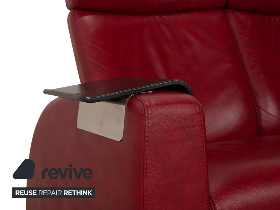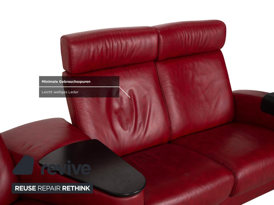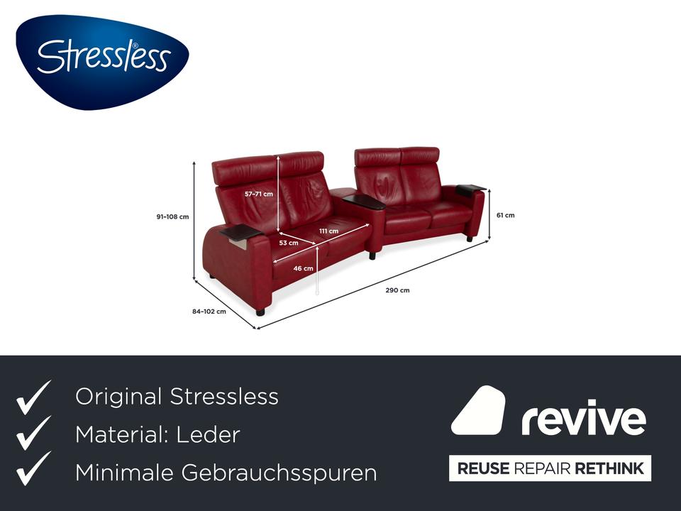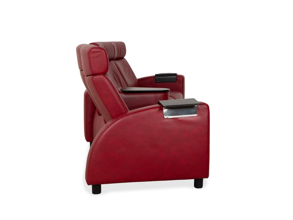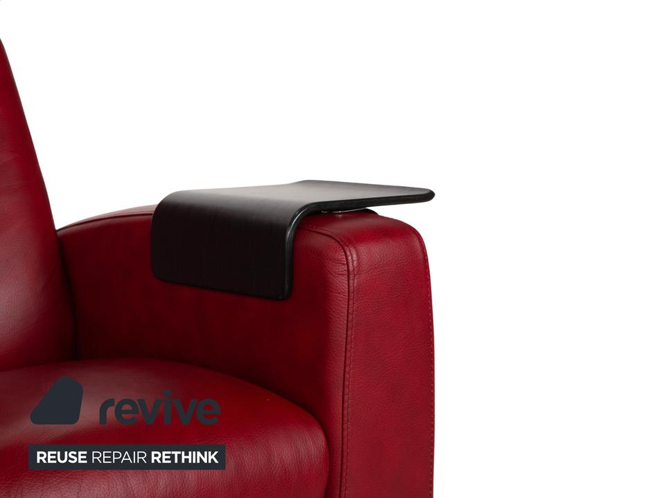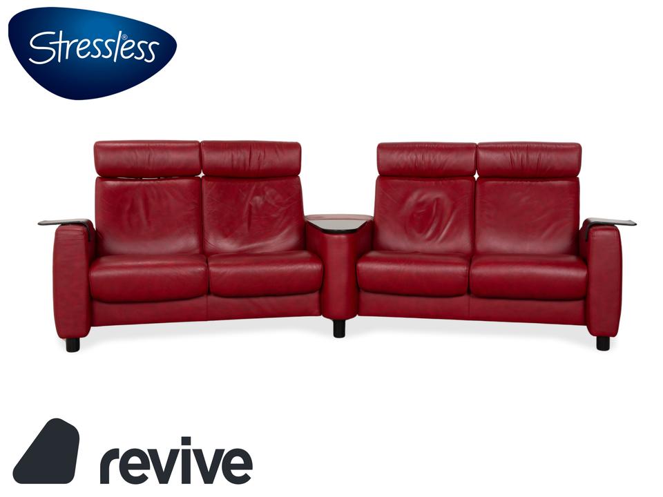 Mit diesem Viersitzer aus der Stressless „Arion“ Serie holst du dir das ultimative Heimkino-Erlebnis in dein Wohnzimmer. Die Kombination aus vier Sitzplätzen, die durch eine praktische Mittelkonsole verbunden sind, macht dieses Sofa zum perfekten Treffpunkt für entspannte Abende mit der Familie oder Freunden.Jeder Sitz ist mit der bewährten Stressless-Gleitfunktion ausgestattet, die sich sanft deinen Körperbewegungen anpasst – so findet jeder seine individuelle Lieblingsposition. Die hohen Rückenlehnen (Highback) sorgen für optimale Unterstützung von Kopf und Nacken, was besonders bei langen Filmen Gold wert ist. Das rote Leder setzt dabei einen kräftigen, warmen Akzent im Raum, während die integrierte Ablagefläche in der Mitte Platz für Getränke und Snacks bietet. Luxus, Komfort und Funktionalität in einem beeindruckenden Möbelstück.