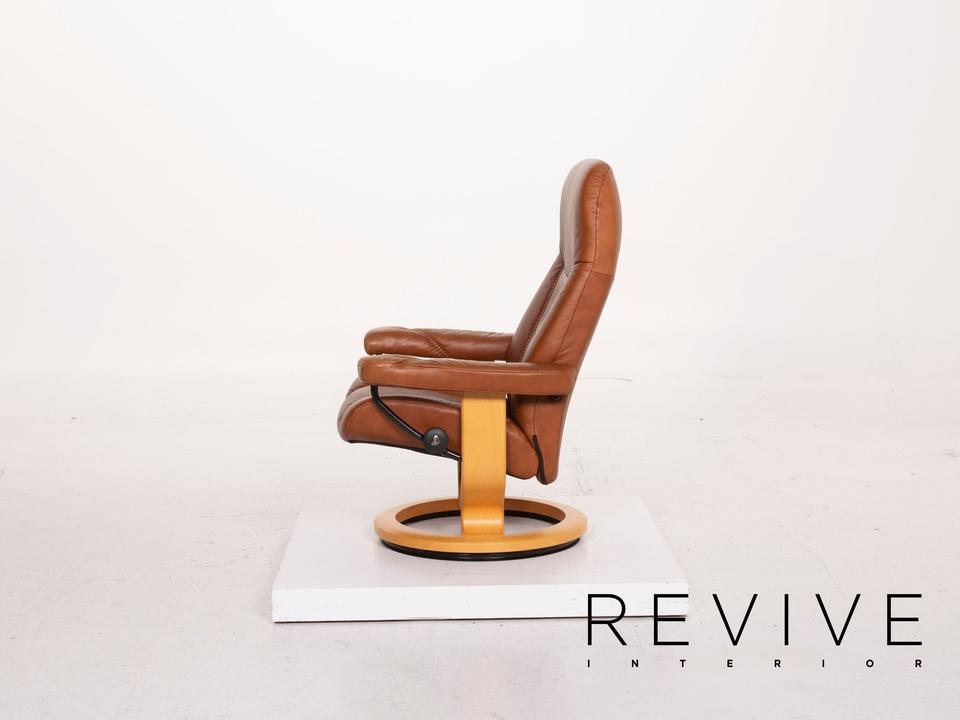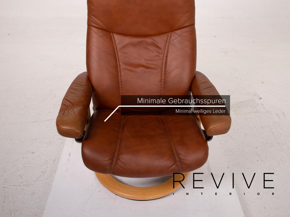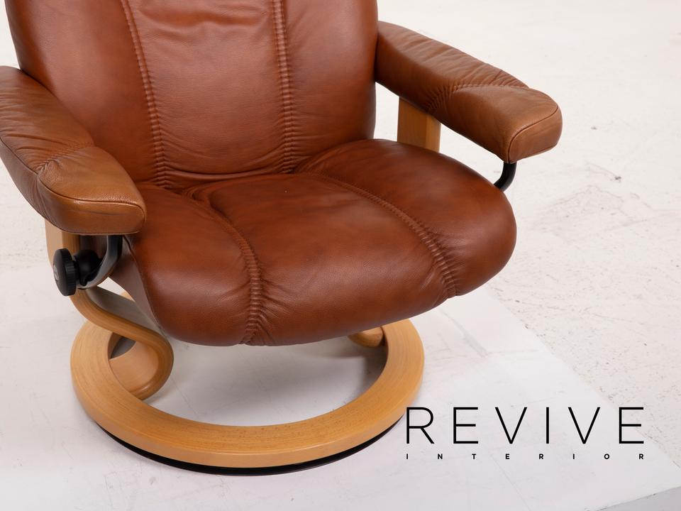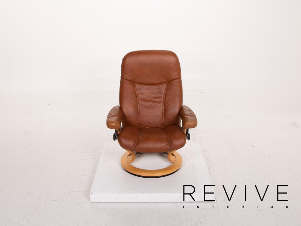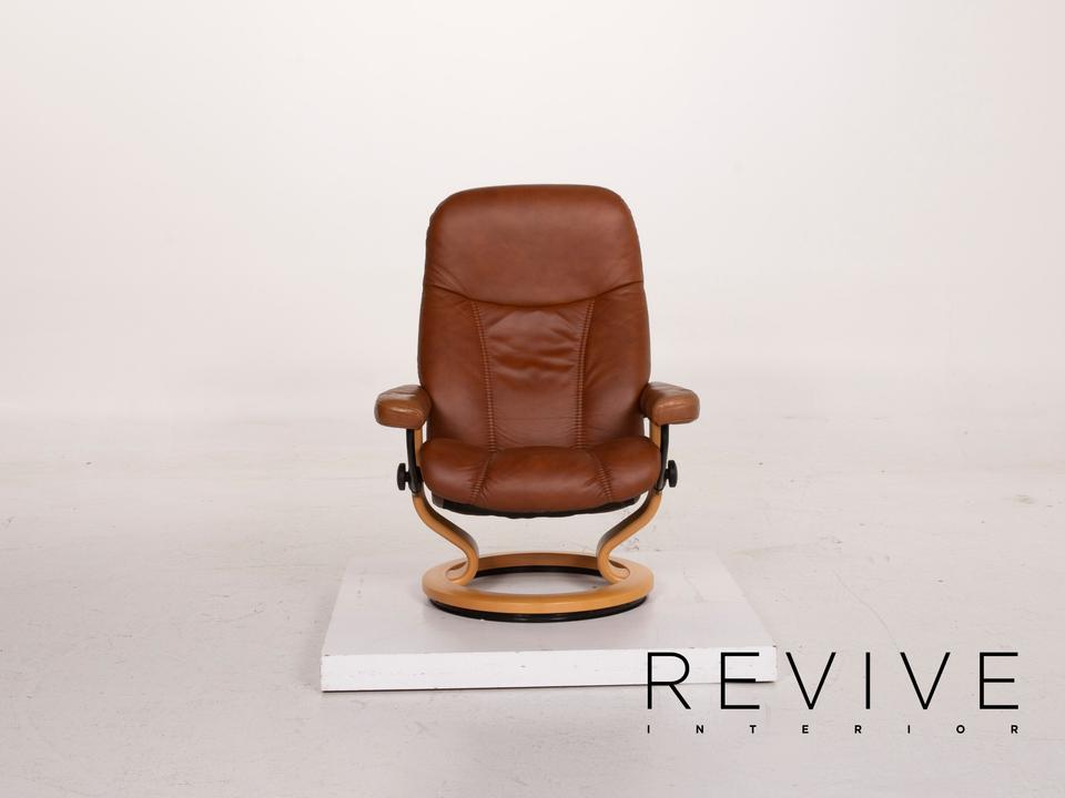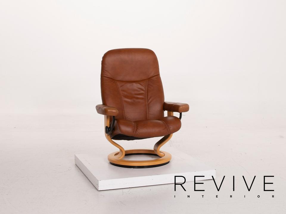 Der Stressless Consul mit Hocker macht seinem Namen alle Ehre – hoher Komfort ist garantiert durch eine weiche Sitzpolster und eine ergonomische Form. Sessel und Hocker sind mit einem blauen Echtleder bezogen und stehen auf einem Gestell aus dunklem Holz. Der Sessel (Größe M) kann außerdem in eine Relaxposition gebracht werden.