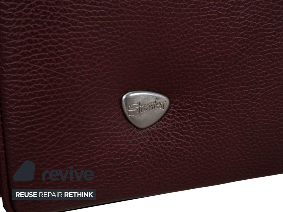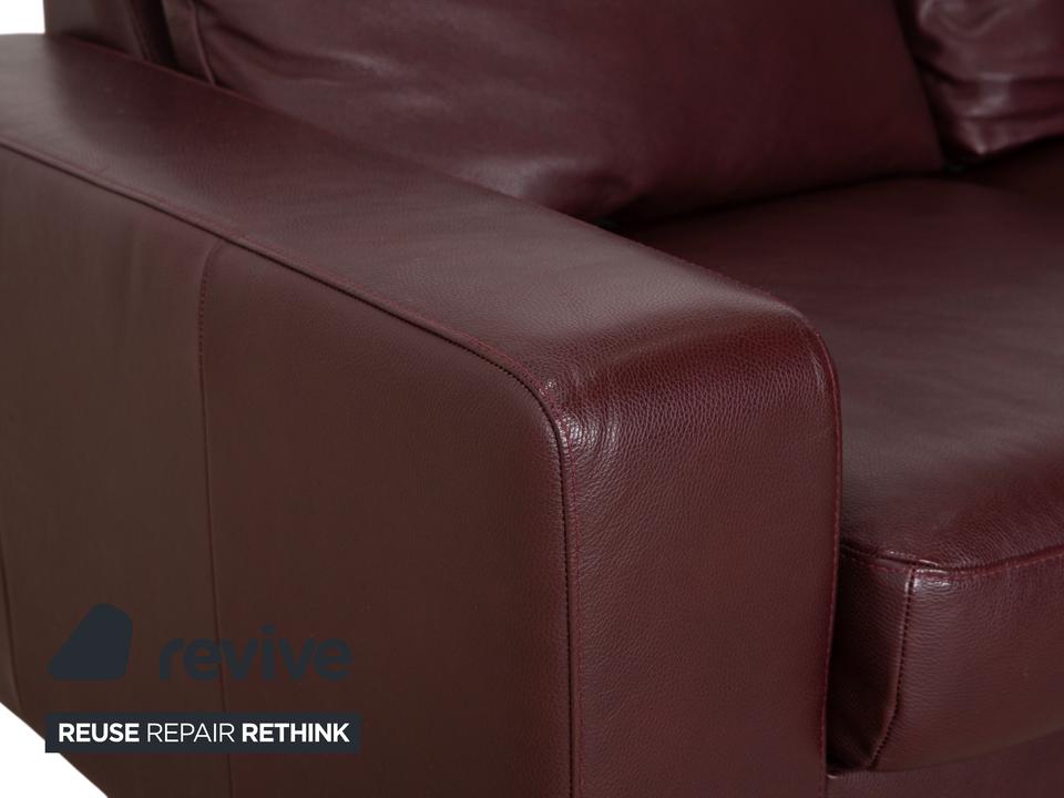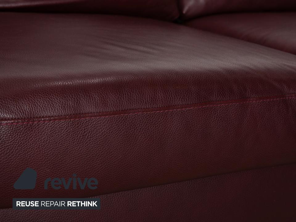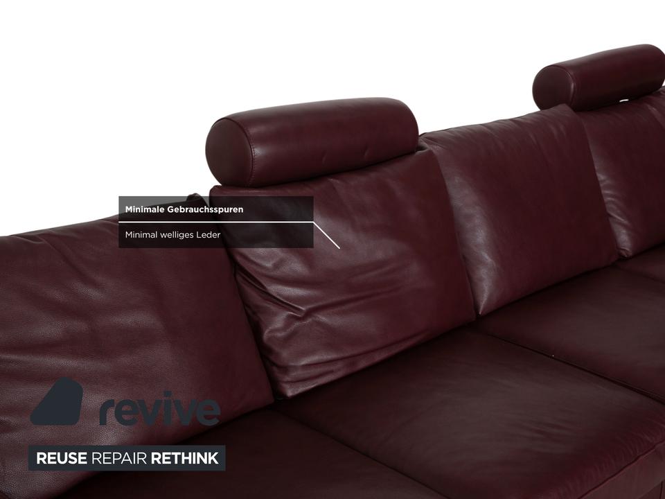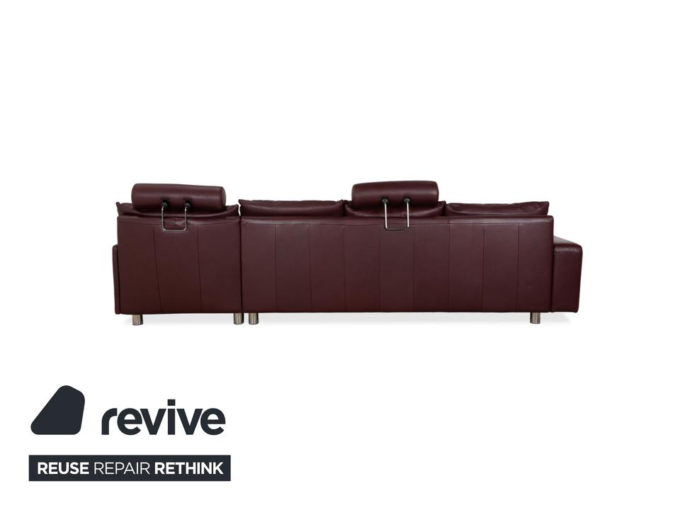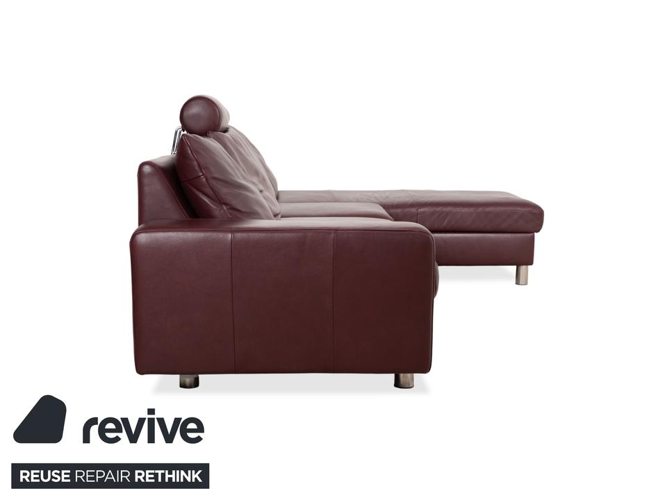 Stressless E200: Skandinavische Entspannung in edlem BordeauxDieses Ecksofa vereint die weltberühmte Bequemlichkeit von Stressless mit einer modernen, schlanken Linienführung. Das Modell E200 ist der Beweis, dass ergonomischer Komfort nicht „plüschig“ aussehen muss, sondern absolut designorientiert sein kann.Der Bezug ist ein hochwertiges Leder in einem satten Bordeaux-Rot. Dieser tiefe Farbton erinnert an ein gutes Glas Rotwein und bringt sofort eine warme, leidenschaftliche Note in dein Wohnzimmer, ohne aufdringlich zu wirken. Im Gegensatz zu den klassischen Stressless-Sesseln wirkt das E200 Sofa durch seine klare, kubische Form und die schlanken Edelstahl-Füße sehr leicht und bodenfrei.Doch der wahre Zauber steckt im Inneren: Das Modell ist bekannt für das patentierte ErgoAdapt™-System (die Sitzfläche neigt sich automatisch leicht, um den Körper perfekt aufzunehmen). Zusätzlich sorgen die aufgesteckten Kopfstützen für eine optimale Entlastung des Nackens. Die offene Recamiere auf der rechten Seite lädt förmlich dazu ein, sich lang zu machen und den Alltag zu vergessen.