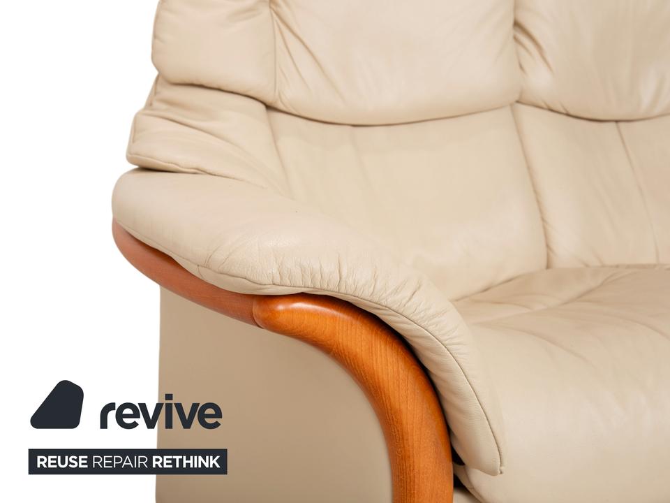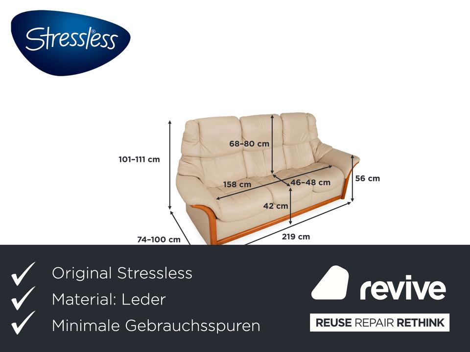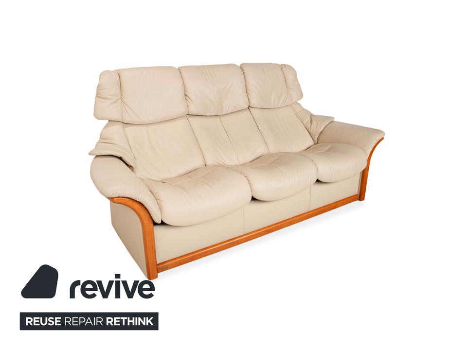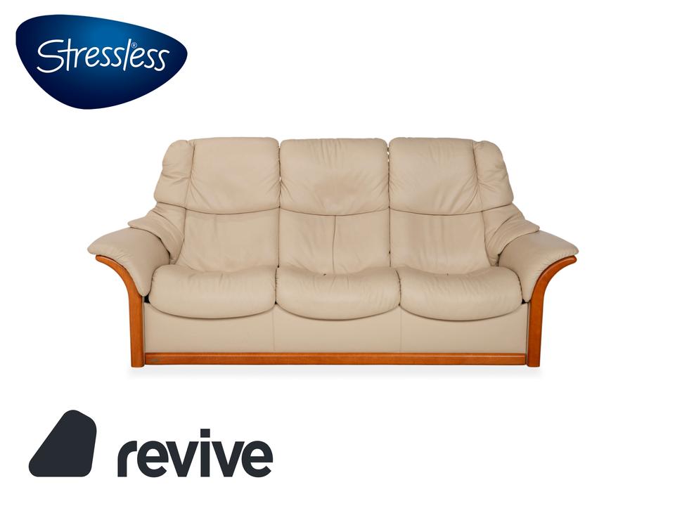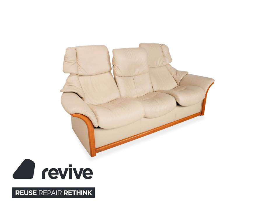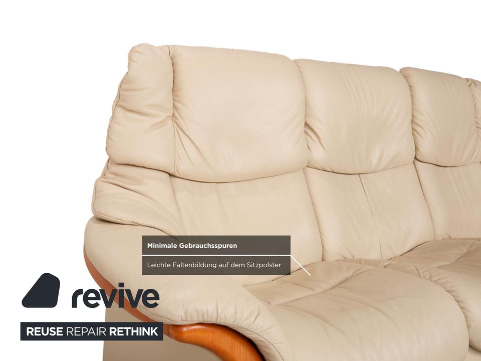 Stressless Eldorado Leder Holz Dreisitzer Beige Creme Sofa Couch