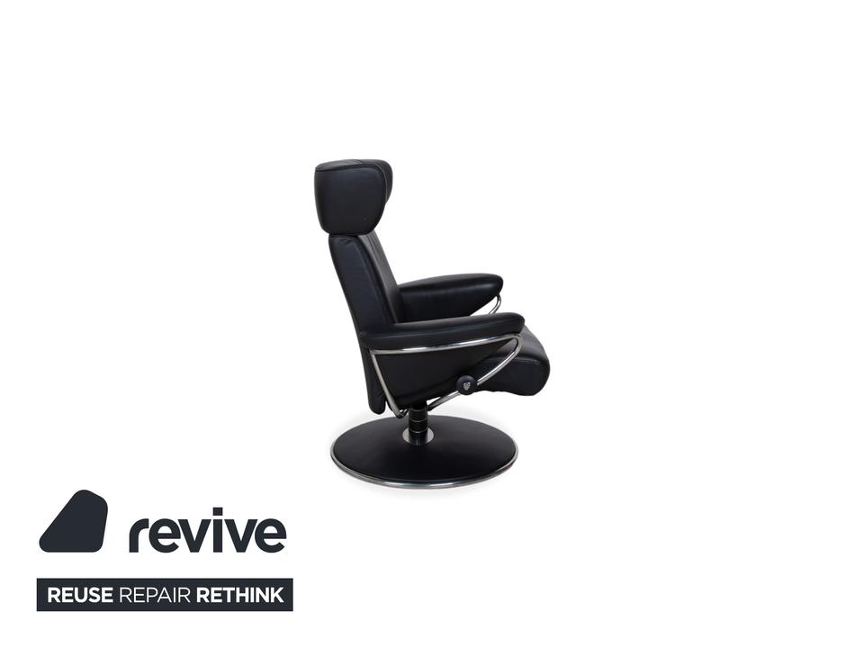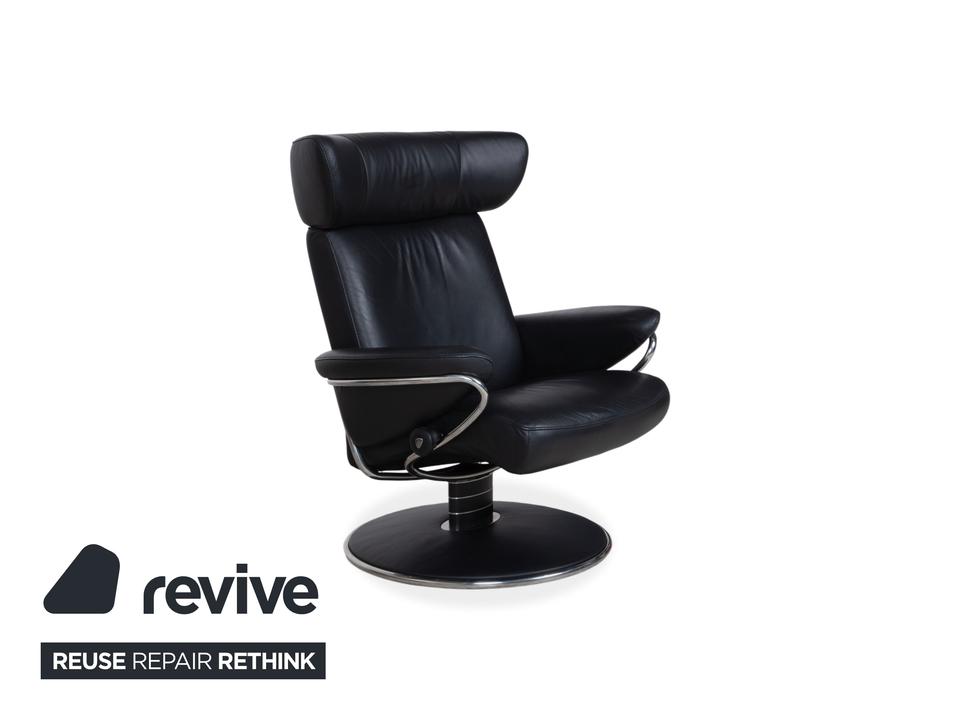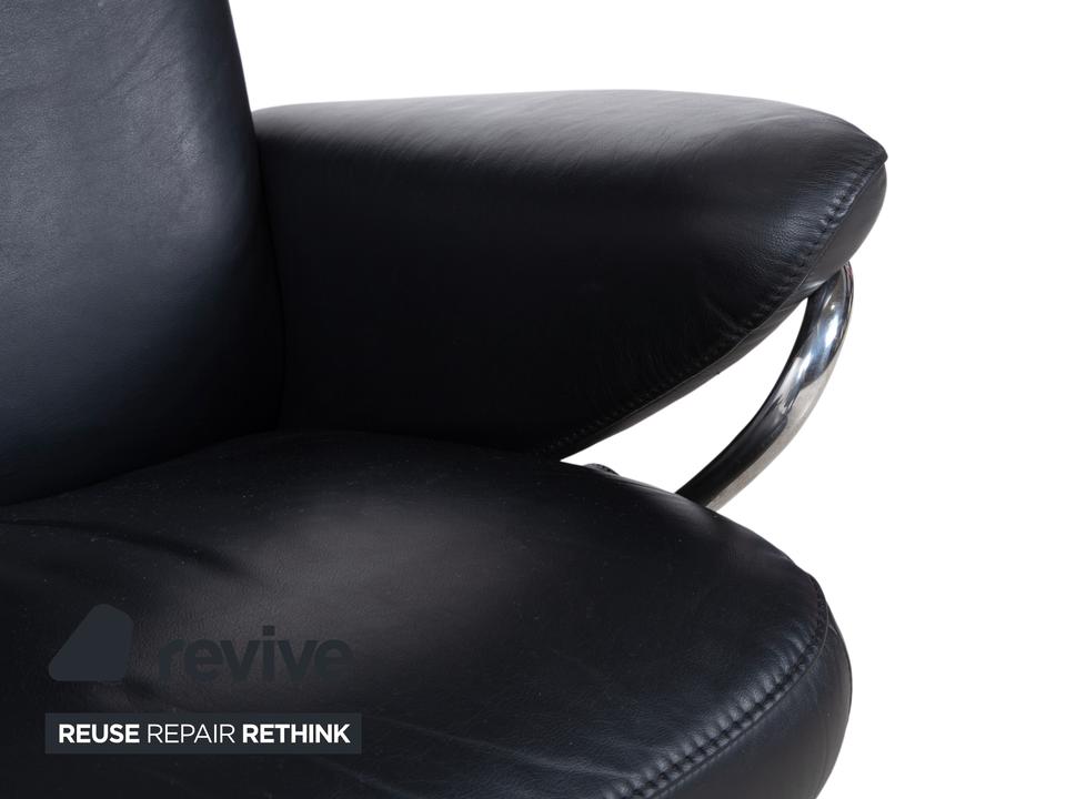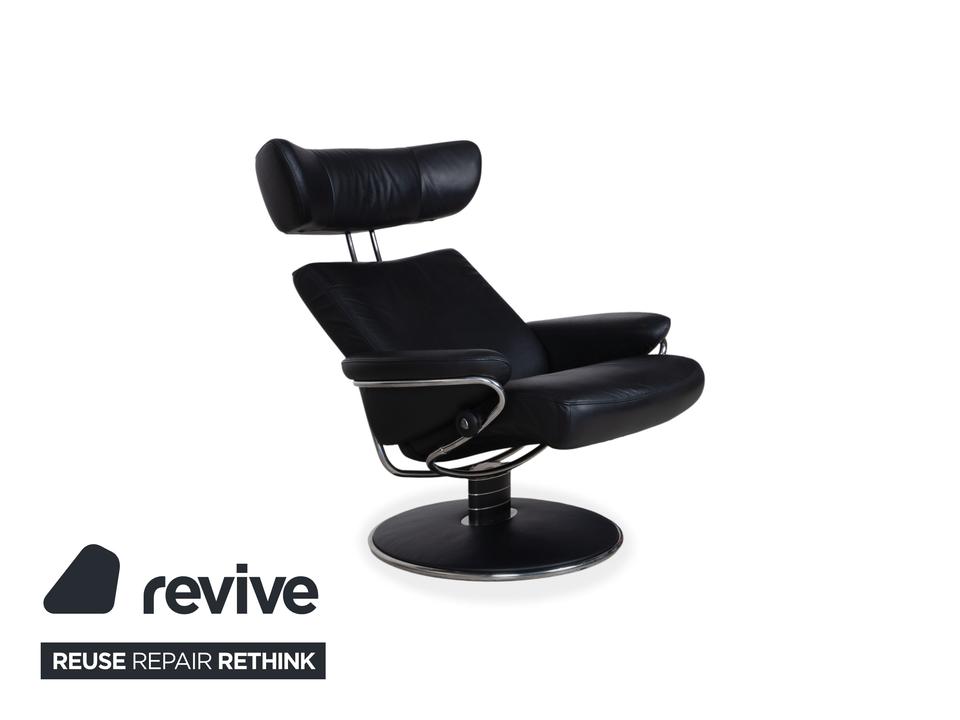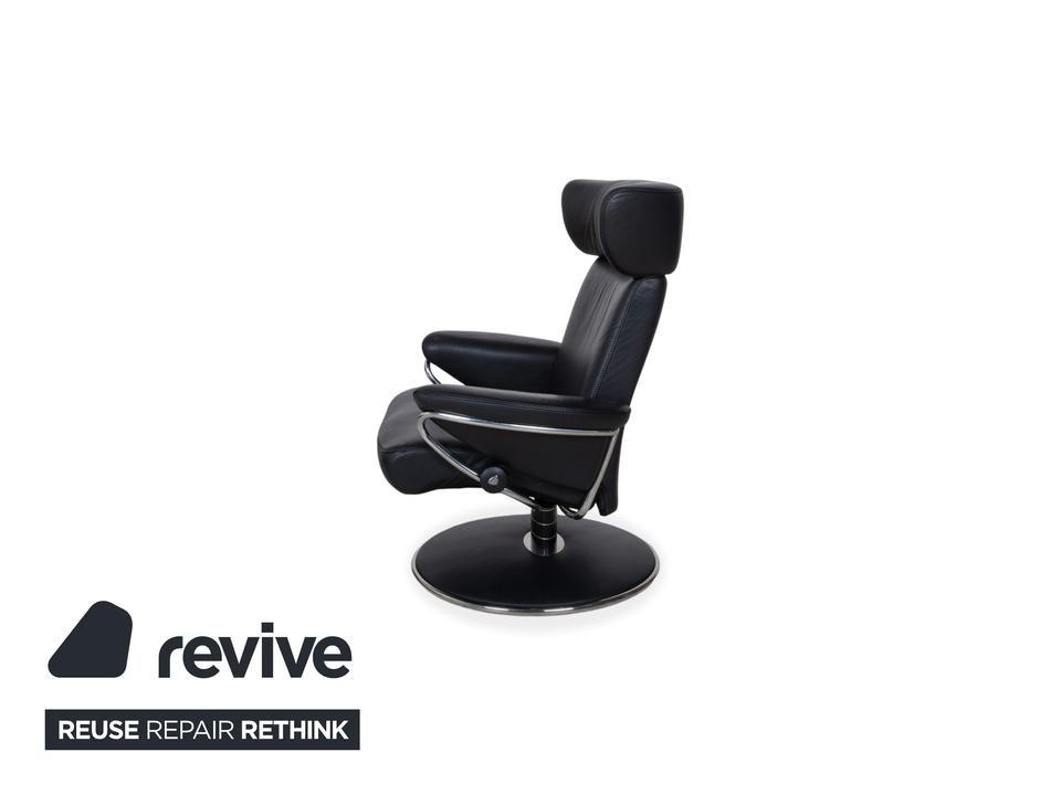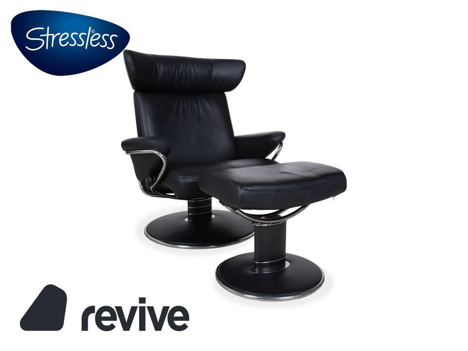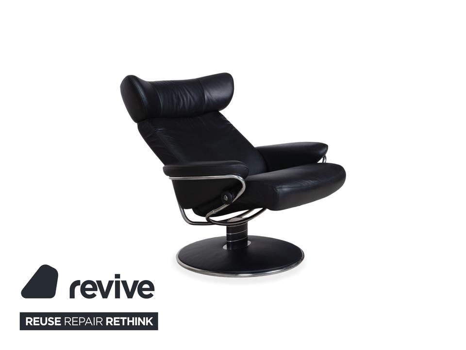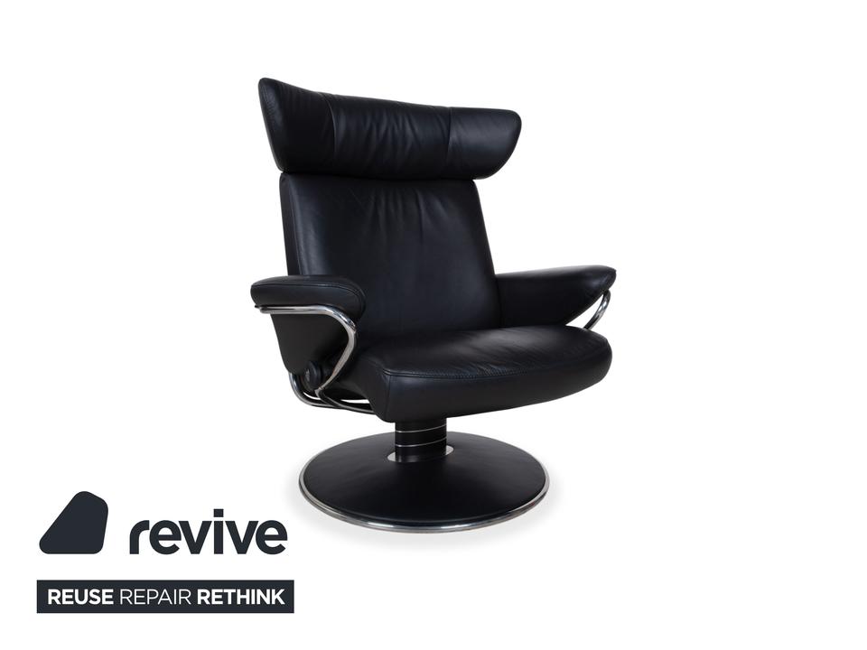 Dieser Stressless Jazz Sessel macht mit seinem ikonischen Design seinem Namen alle Ehre und bringt ordentlich Schwung in jeden Raum. Die Kombination aus dem schwarzen Leder und dem schwarzen Untergestell mit Details aus Metall im Chromlook verleiht dem Sessel diesen unverwechselbaren, fast schon futuristischen Look. Was diesen Sessel so besonders macht, ist natürlich die qualitative Verarbeitung und Ergonomie, typisch Stressless eben.Die manuelle Funktion dieses Modells sorgt für ein Sitzerlebnis, das genau auf dich reagiert. Durch das bekannte Stressless Gleitsystem folgt der Sessel fließend deinem Körpergewicht, sodass du dich stufenlos von einer aufrechten Position in eine entspannte Liegehaltung gleiten lassen kannst. Die Kopfstütze lässt sich zudem in der Höhe verstellen und an deine Körpergröße anpassen.Zusammen mit dem passenden Hocker, auf dem du entspannt die Beine hochlegen kannst, holst du dir hier ein echtes Komfort-Highlight ins Haus, das Design und Ergonomie perfekt vereint.